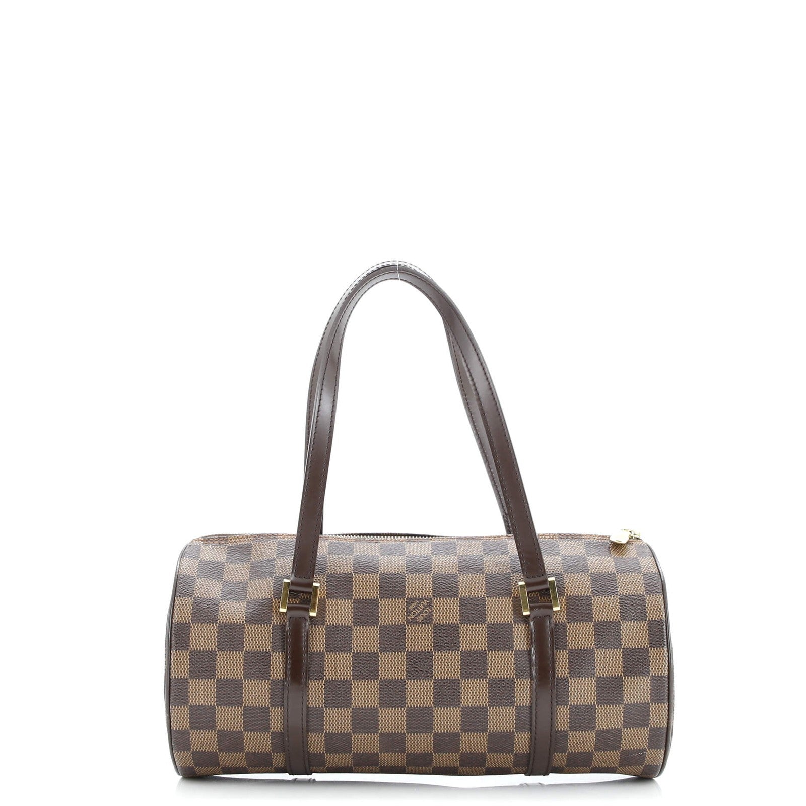 Condition: Good. Exterior: corner wear, edge wear, scuffs, minor creases. Handles/Straps: creases, scuffs, discoloration, minor cracking. Interior: moderate odor, scuffs, minor discoloration. Hardware: scratches, tarnished