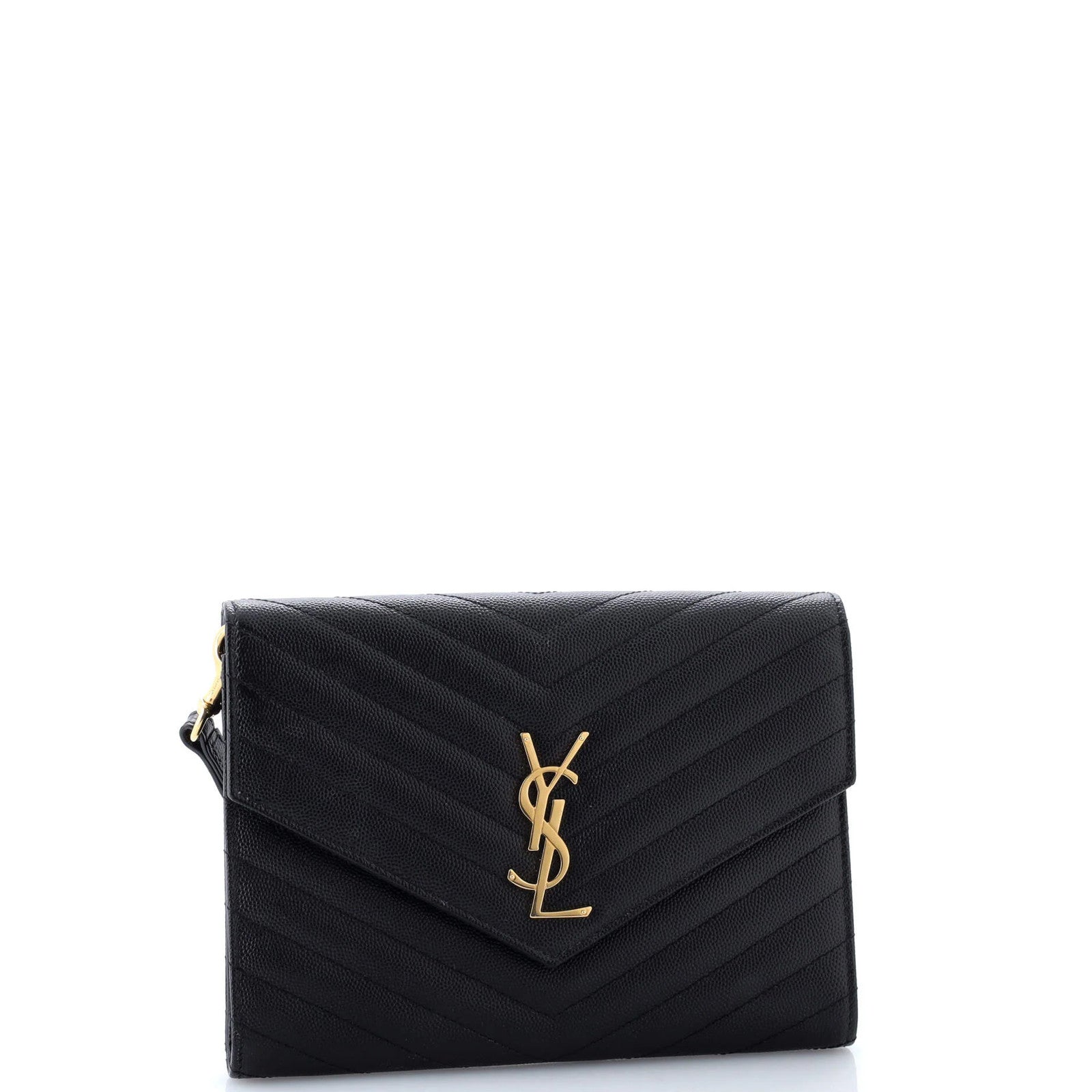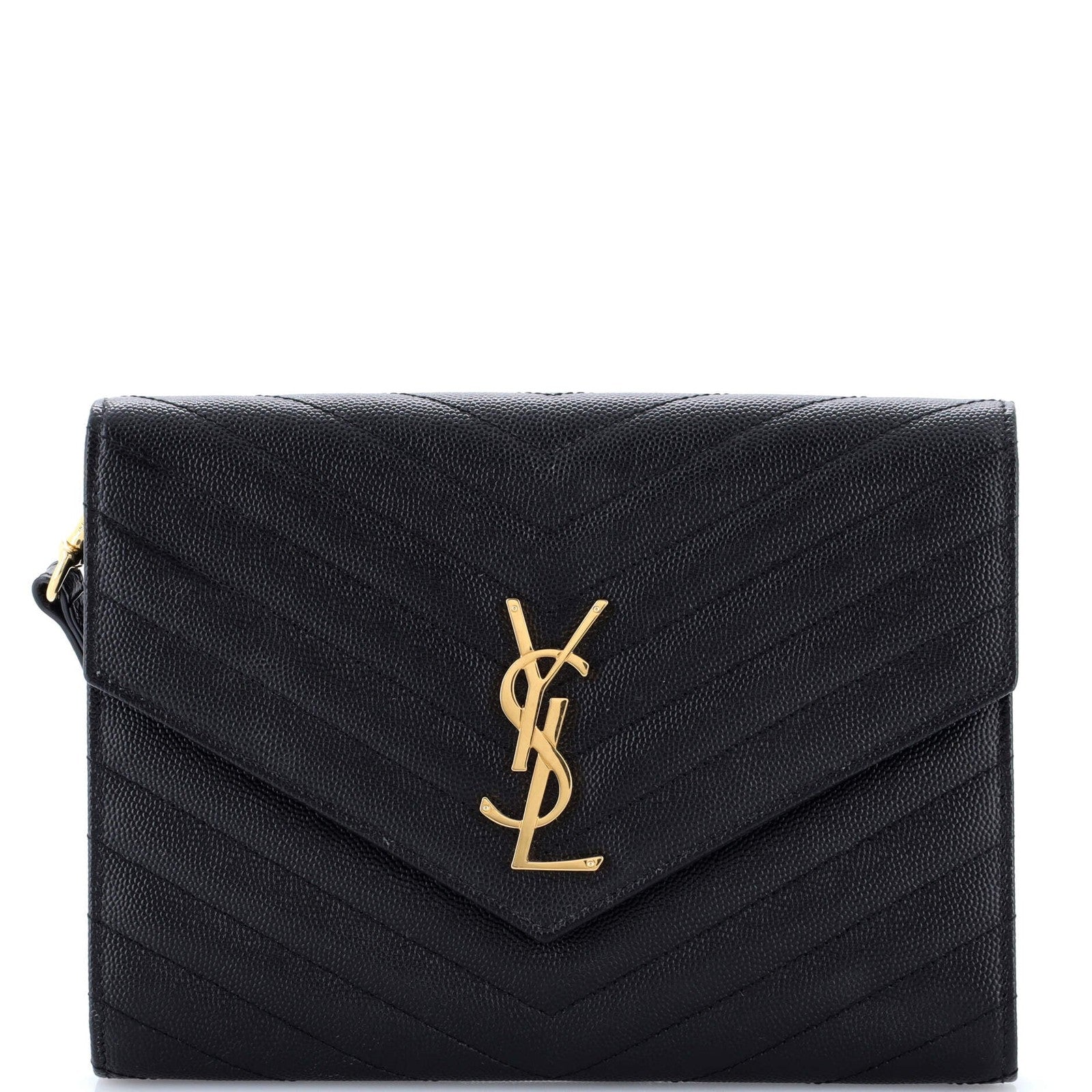 Saint Laurent Classic Monogram Envelope Wristlet Clutch Matelasse Chevron