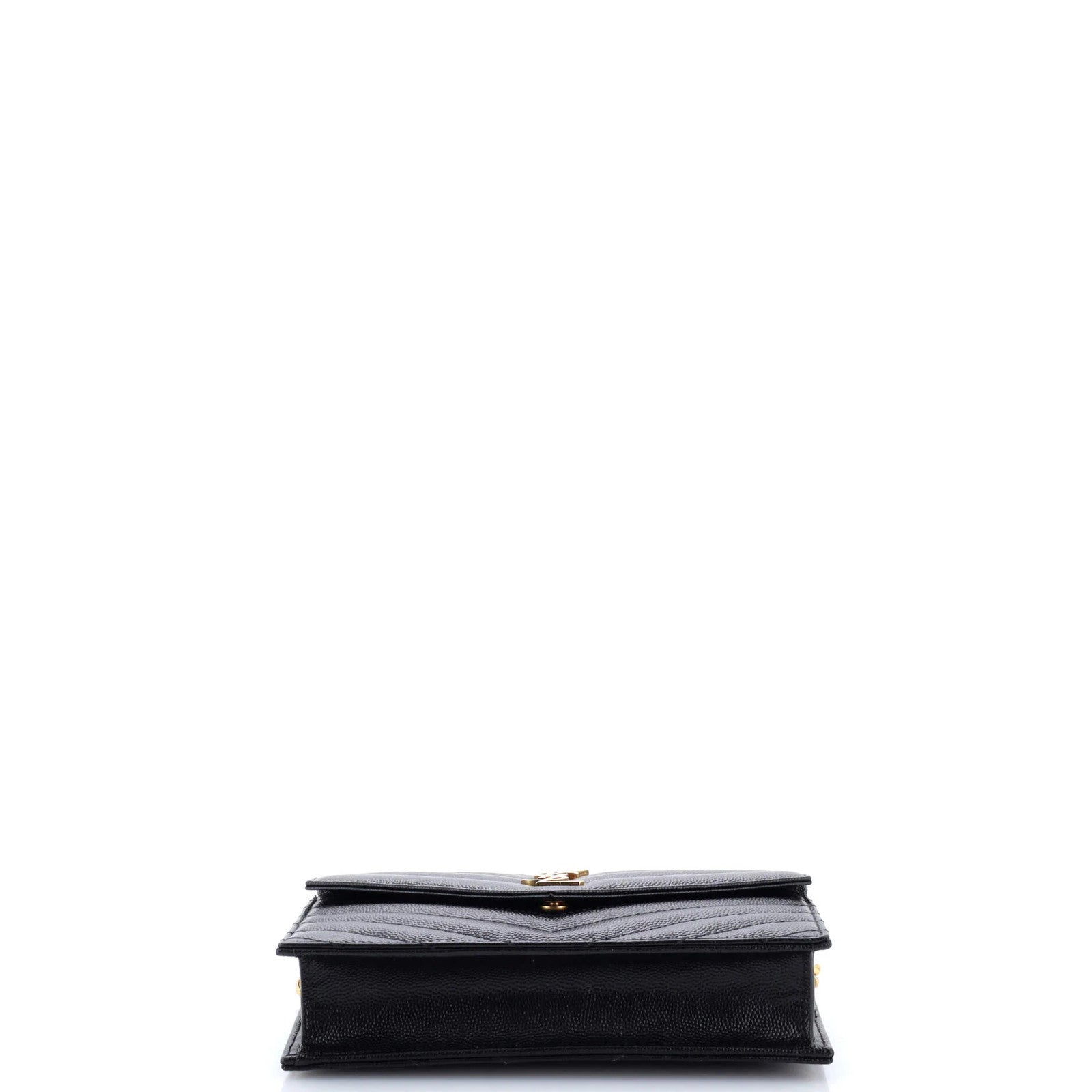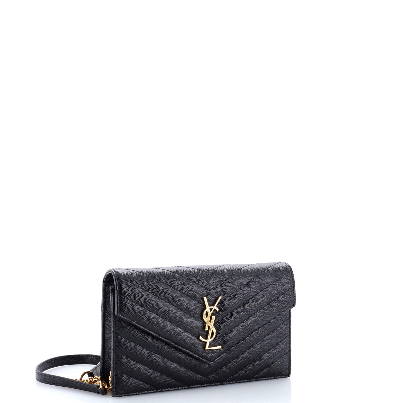 Saint Laurent Classic Monogram Wallet On Chain Matelasse Chevron Leather Small