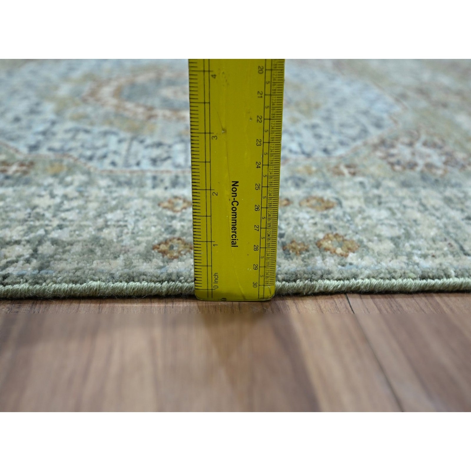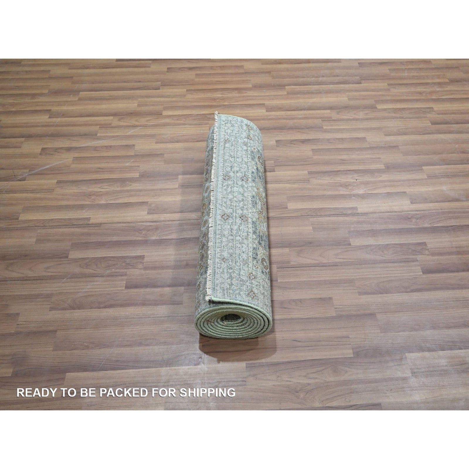 2'7"X12'1" Green Hand Knotted Wool Rug Pre Historic Mamluk Design Runner
