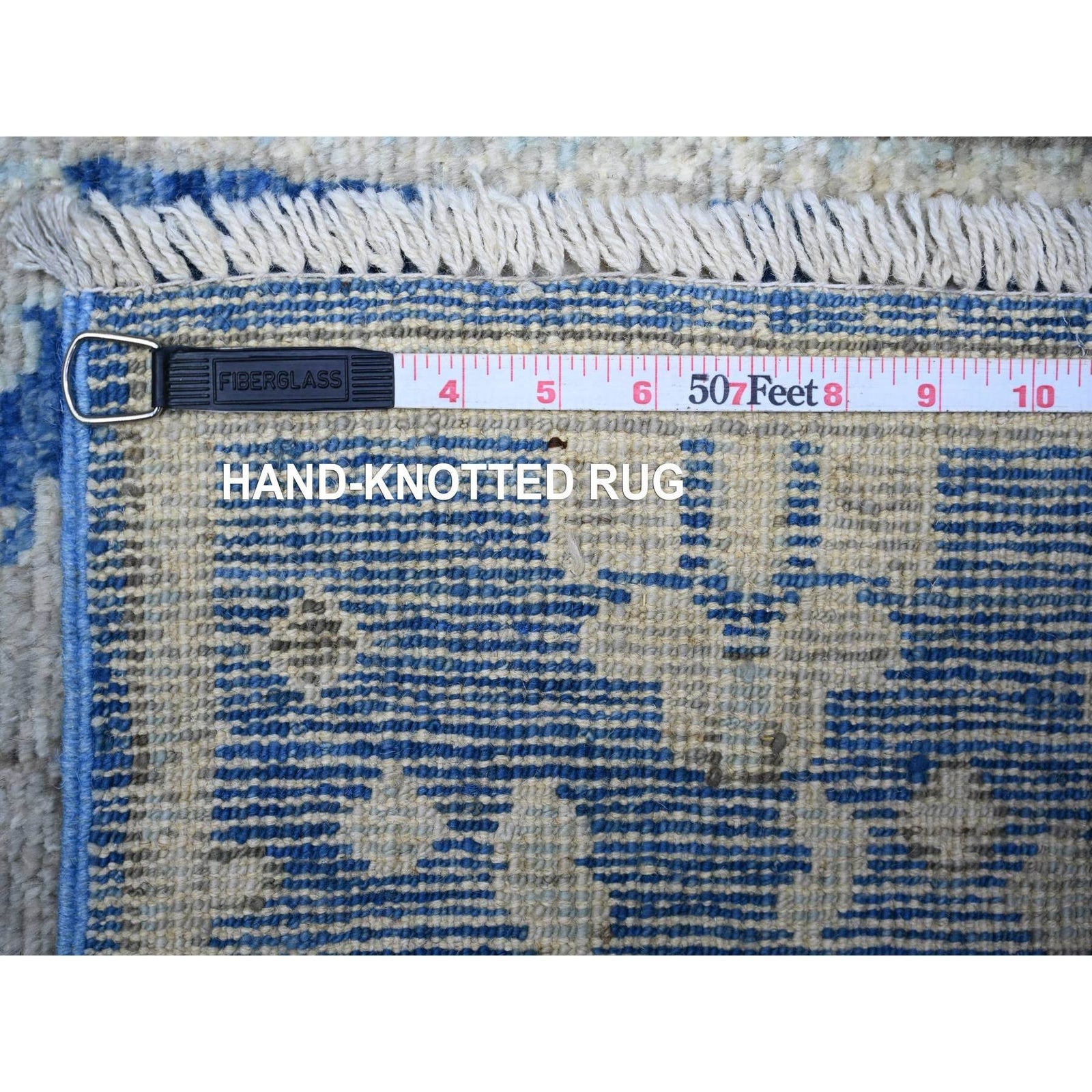 2'7"X7'10" Luxe Blue Afghan Angora Oushak Hand Knotted Wool Runner Rug