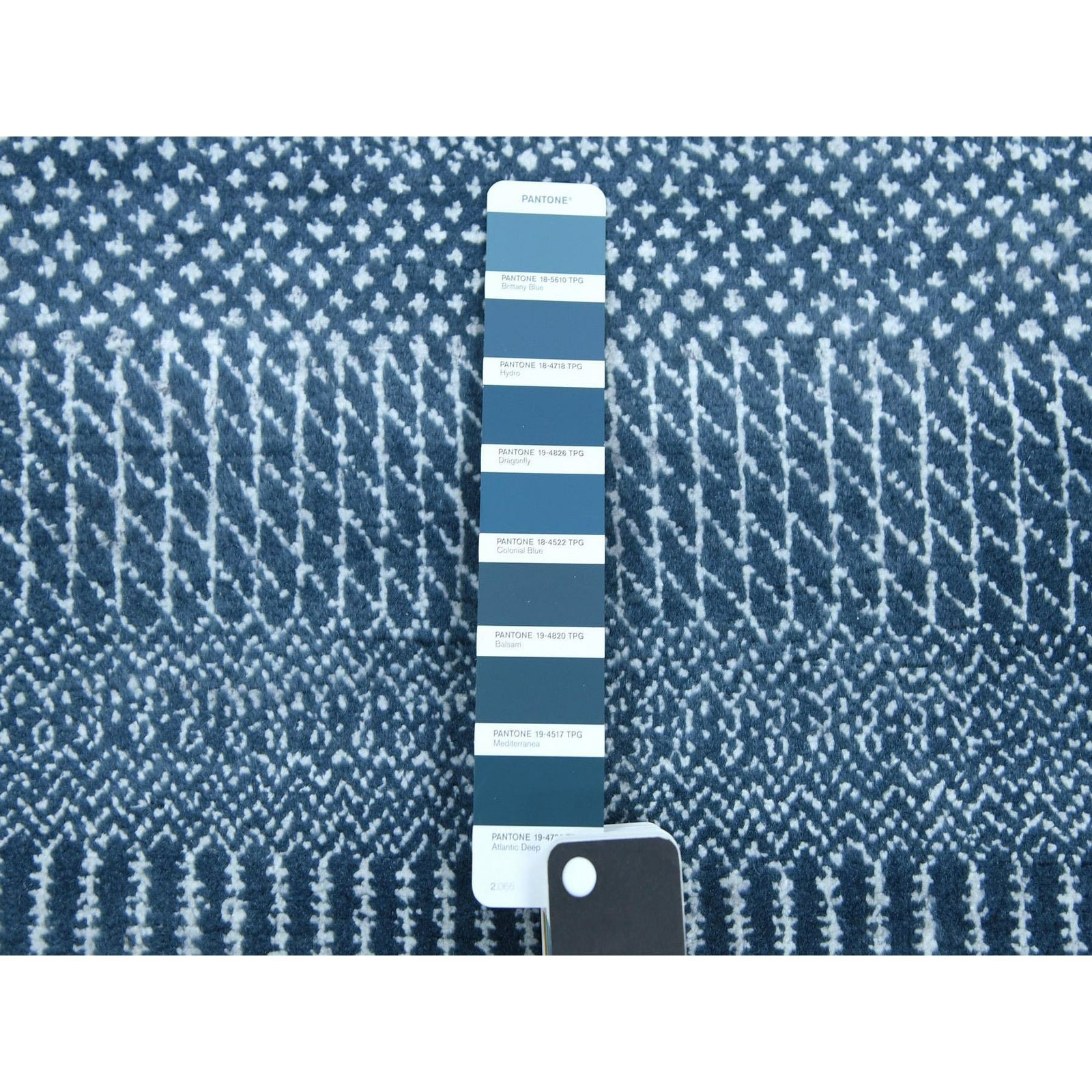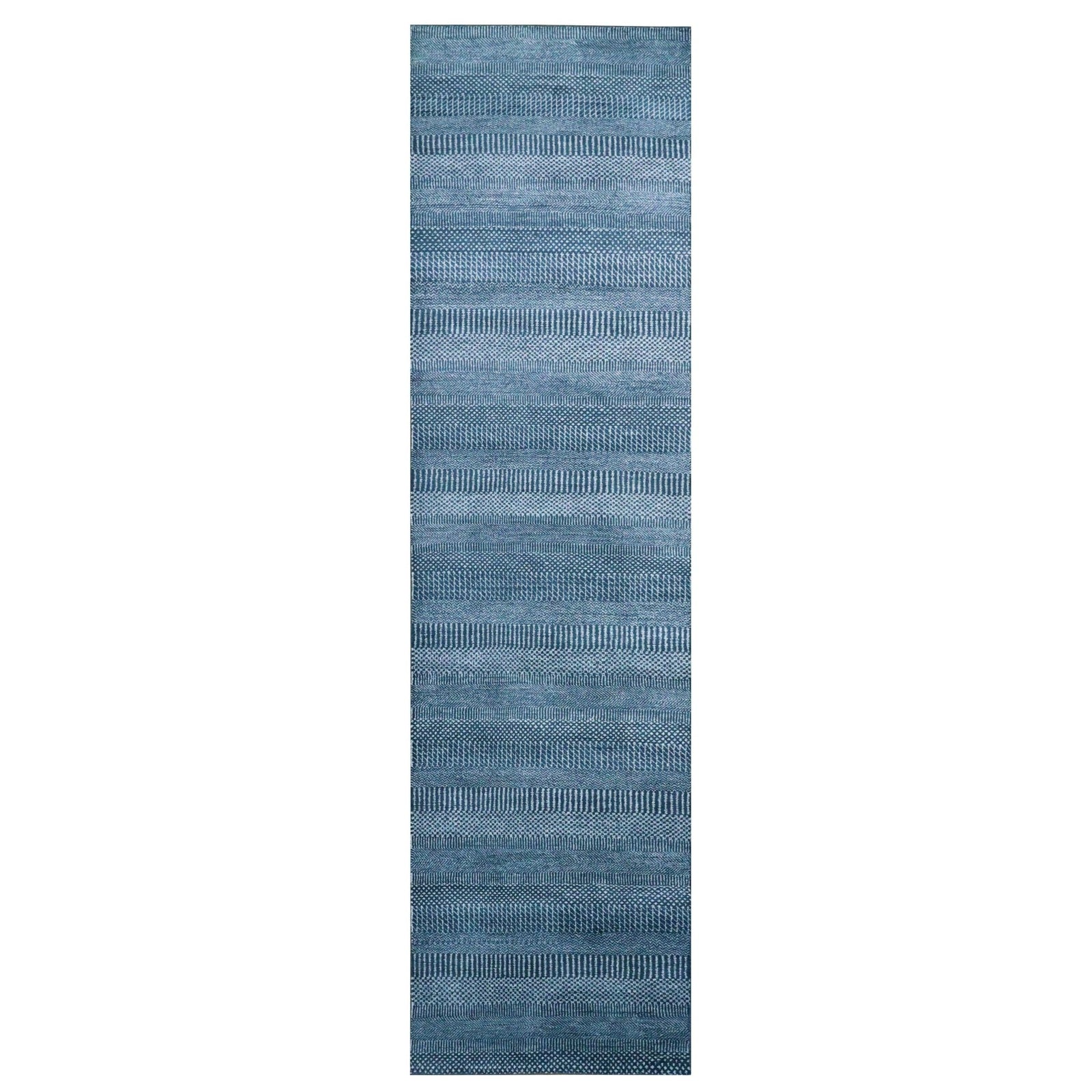 2'9"X11'4" Blue Modern Grass Design Wool And Silk Hand Knotted Runner Rug
