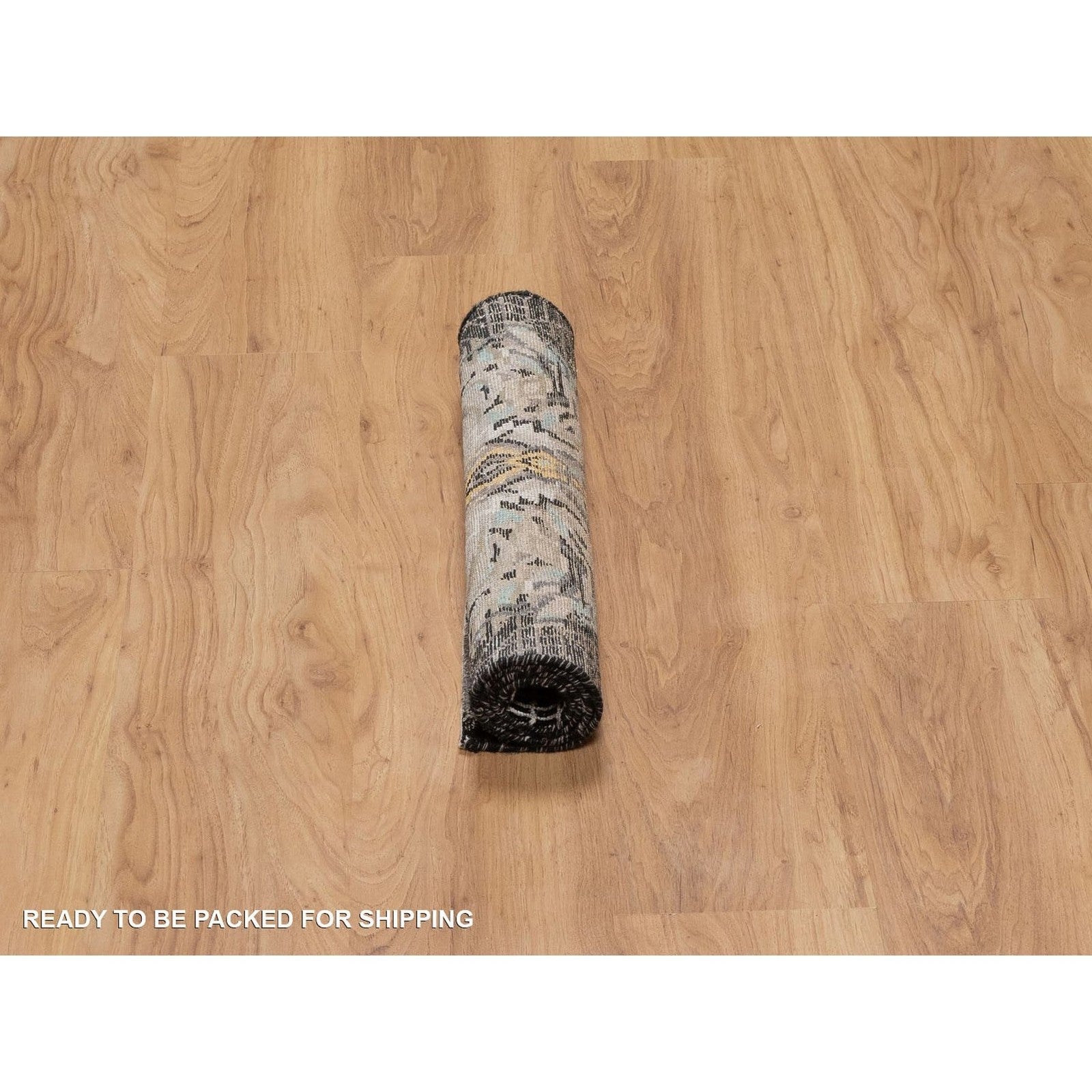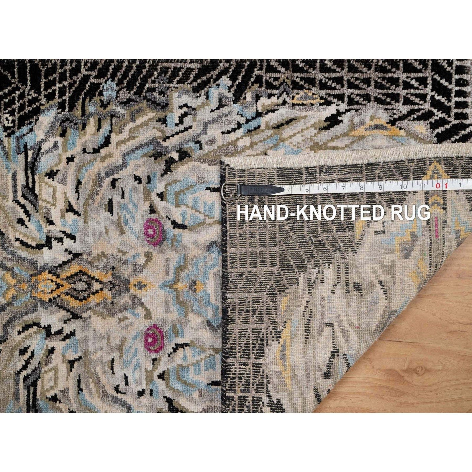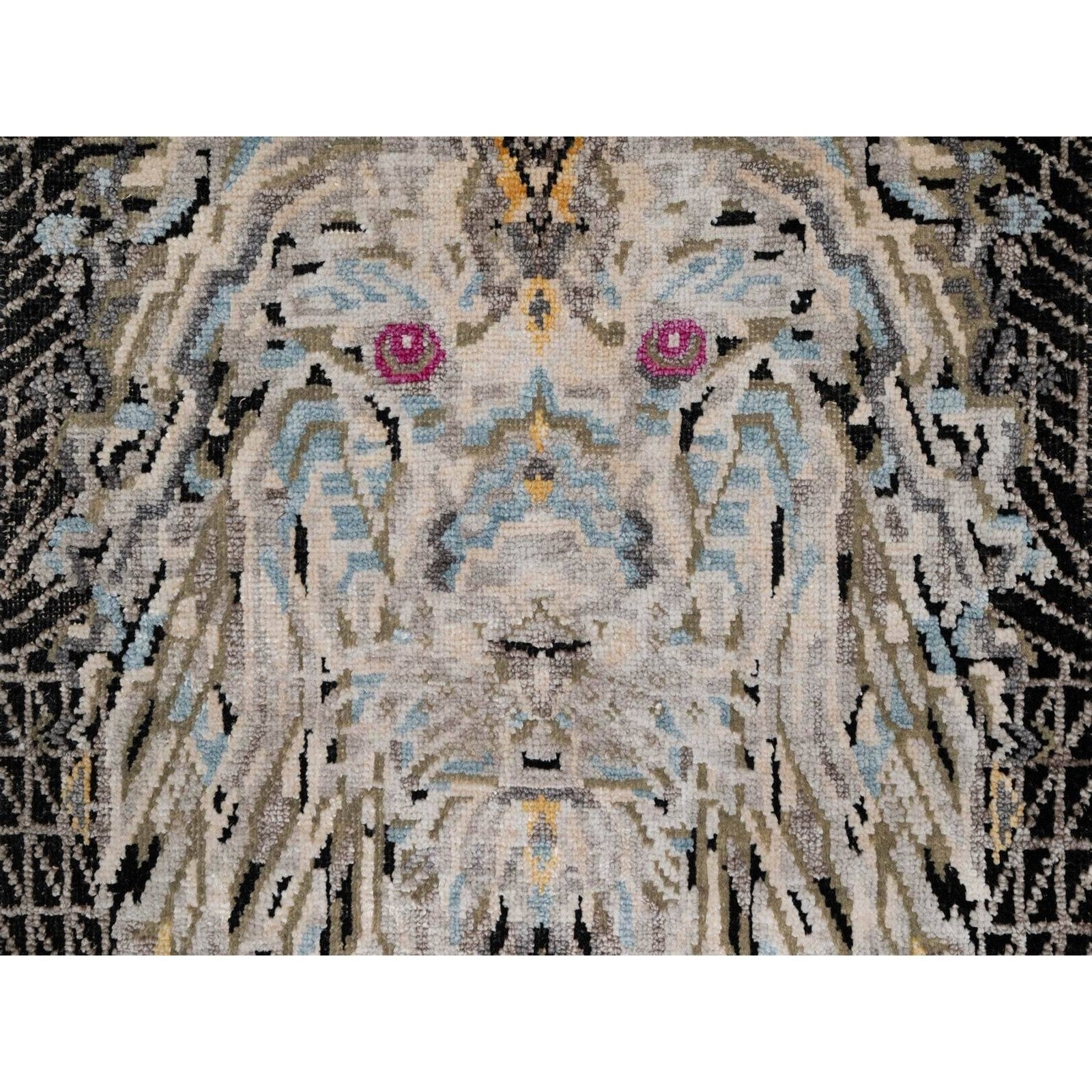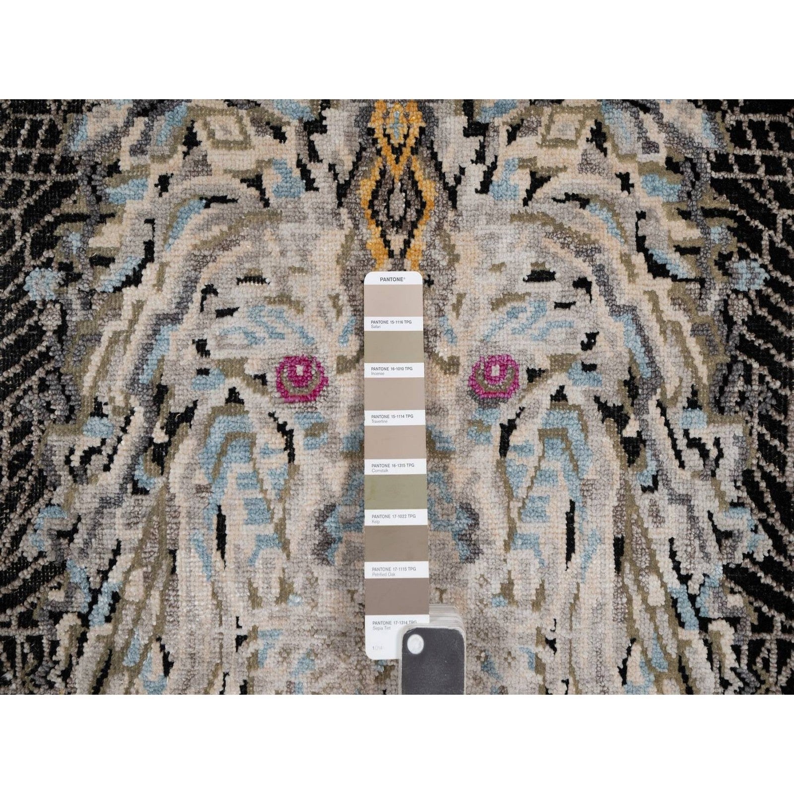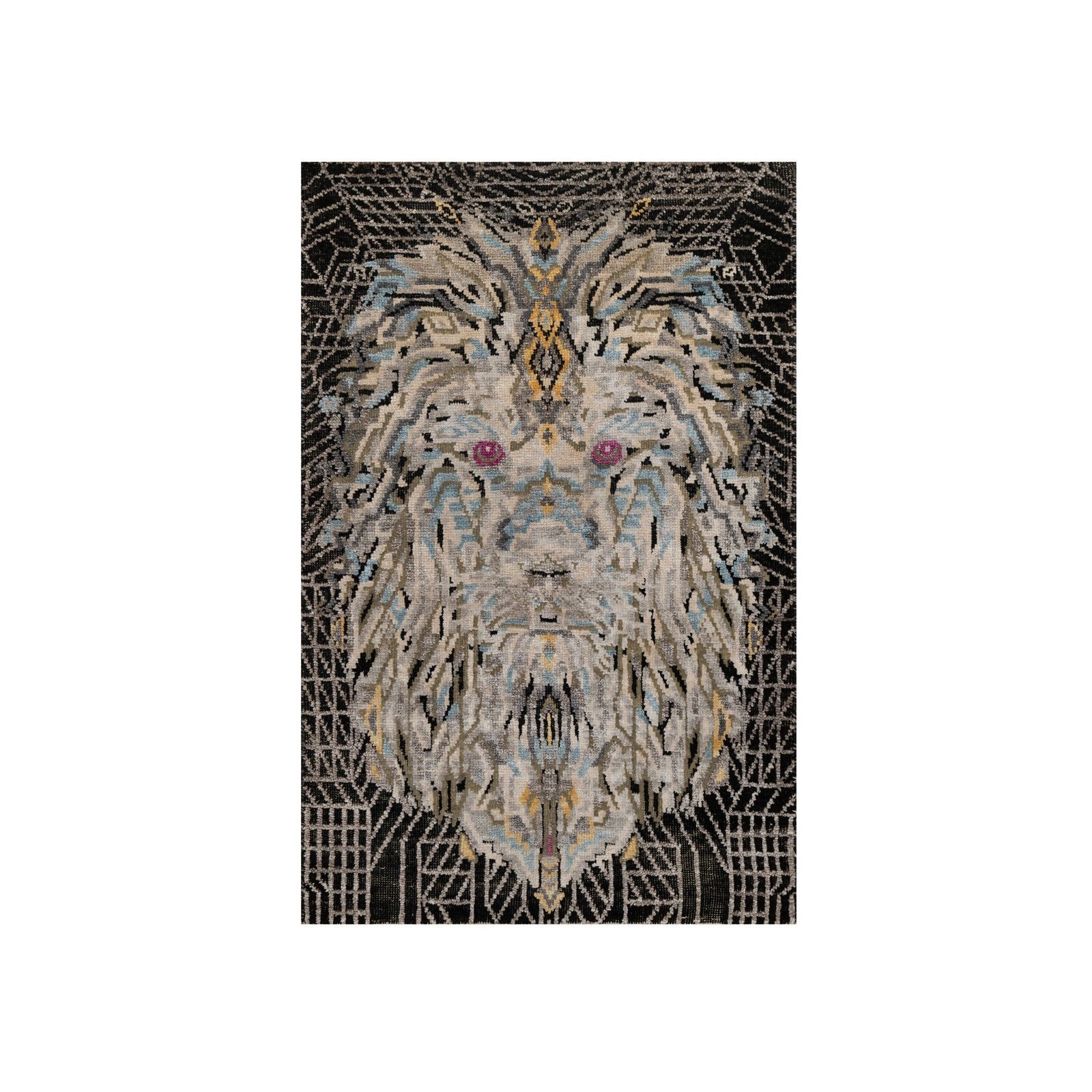 2'X3' Black The Maharaja Lion Novelty Mat Rug Wool And Silk Hand Knotted