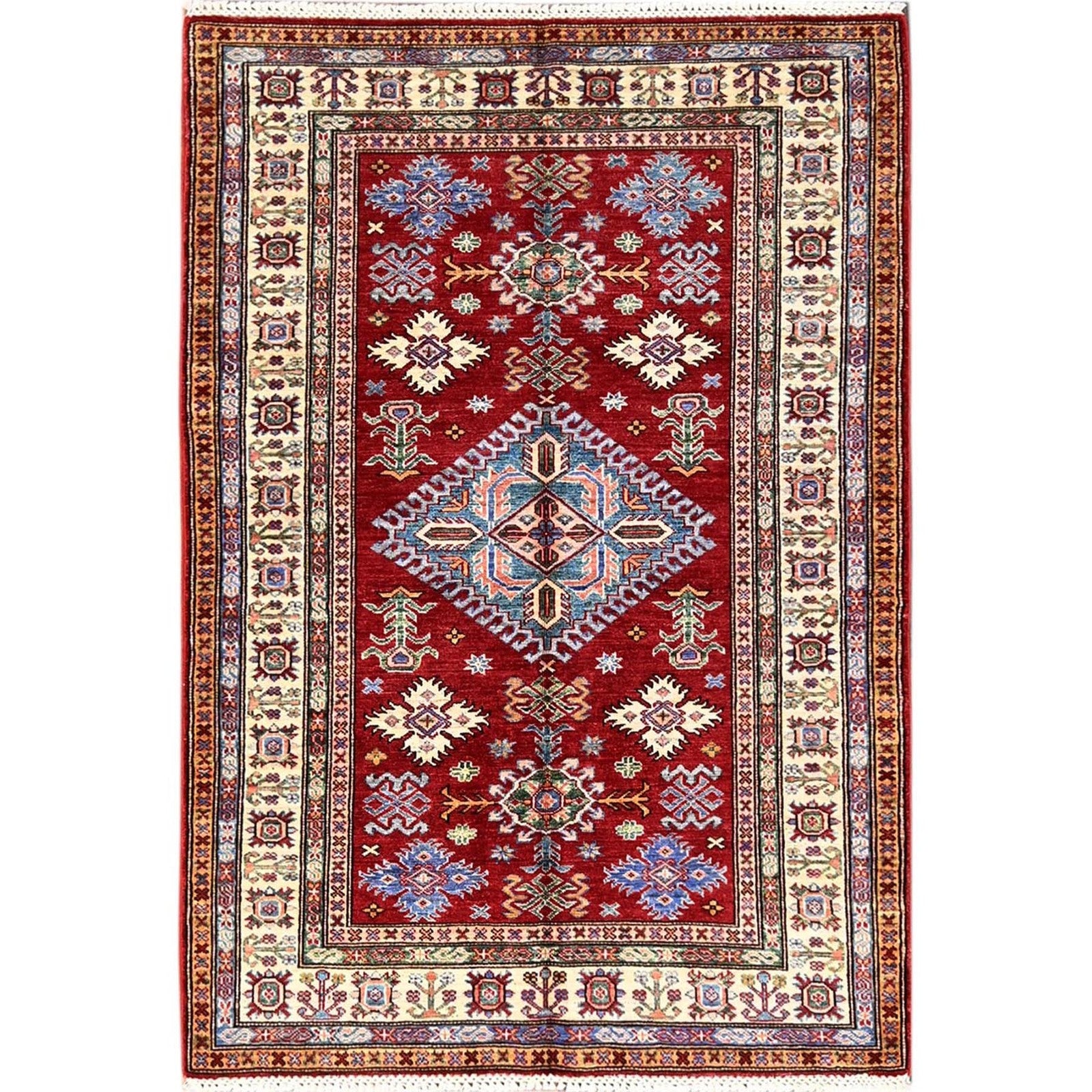 4'X6' Ruby Red Afghan Super Kazak Hand Knotted Pure Wool Oriental Rug