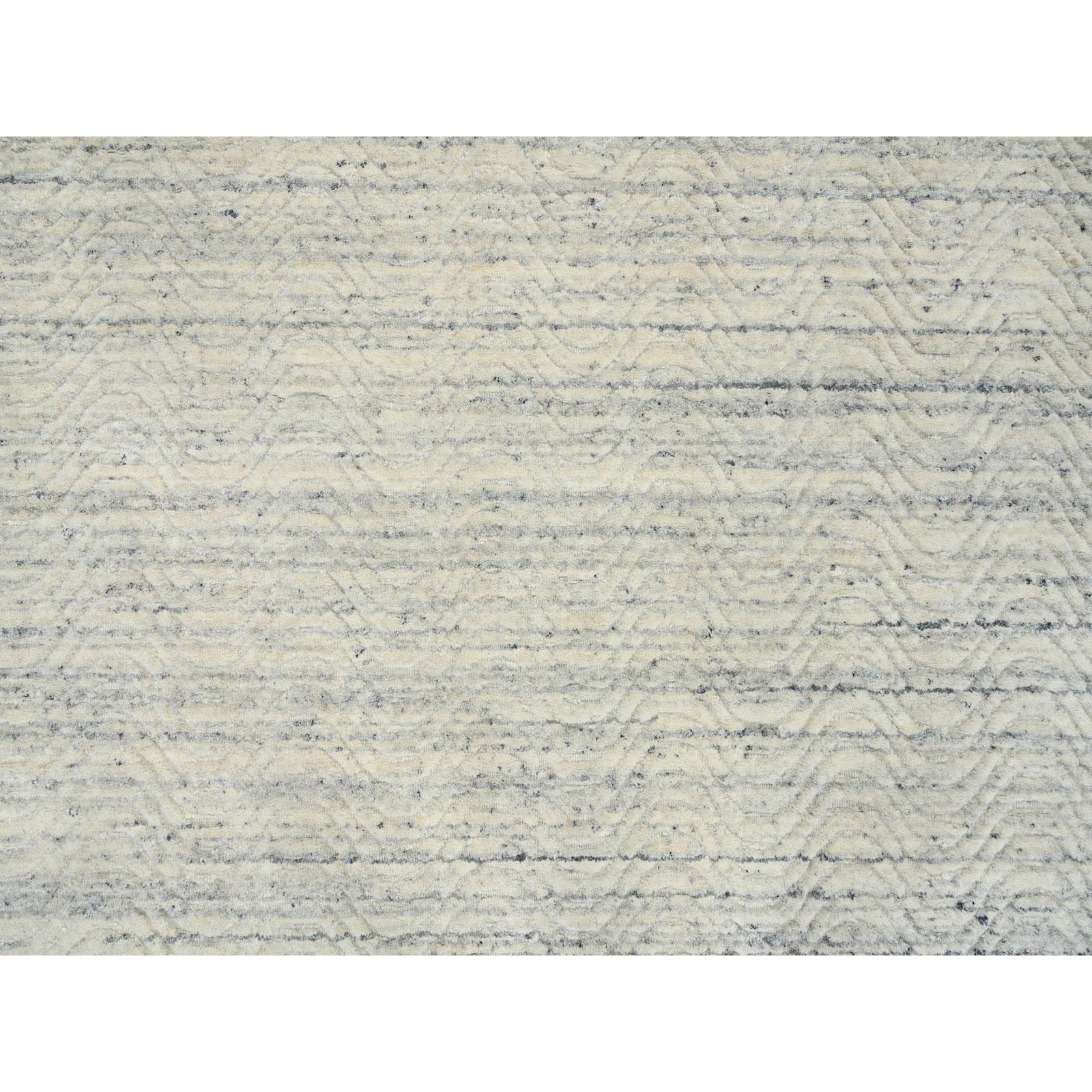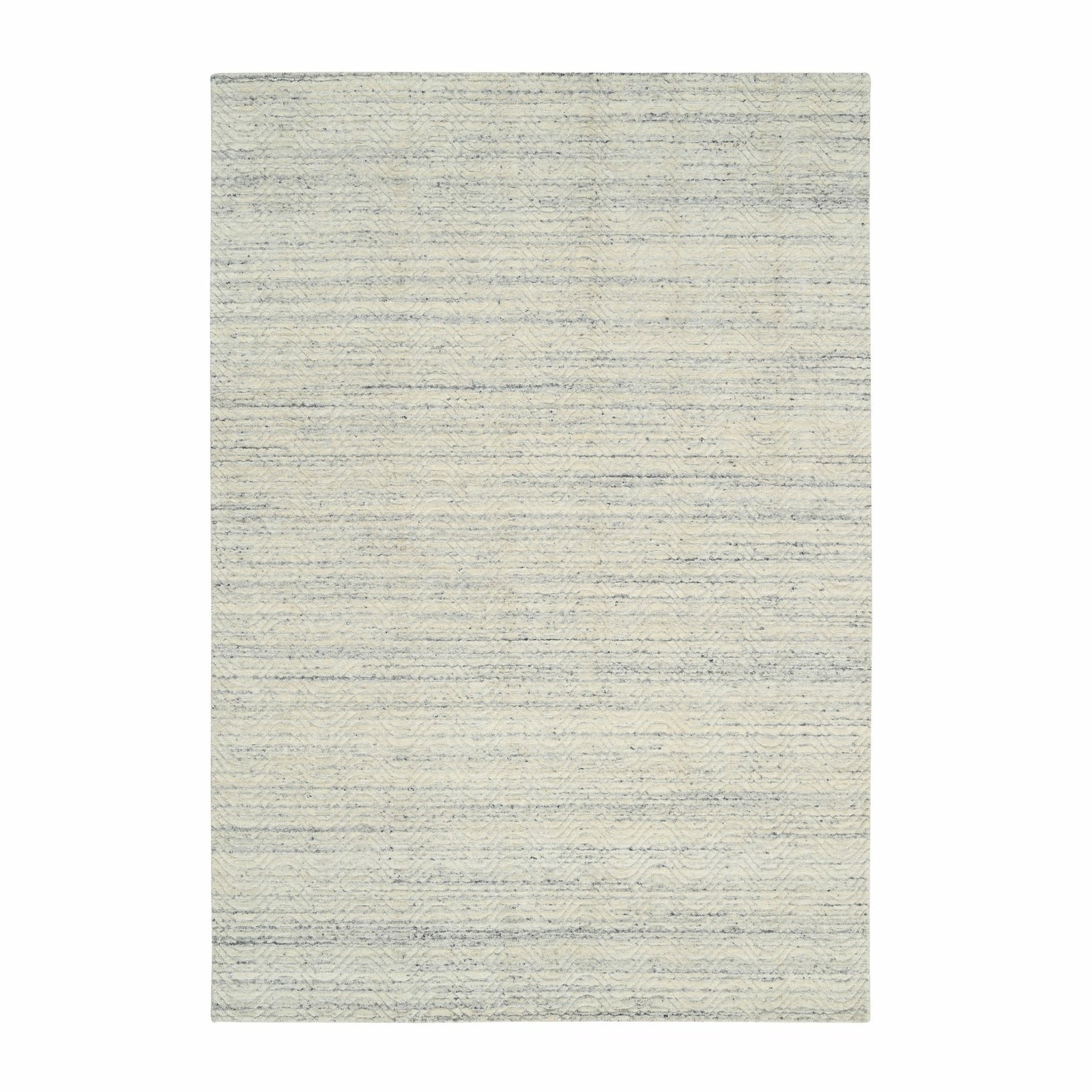 6'1"X9' Beige Variegated Textured Modern Design Wool Hand Loomed Rug