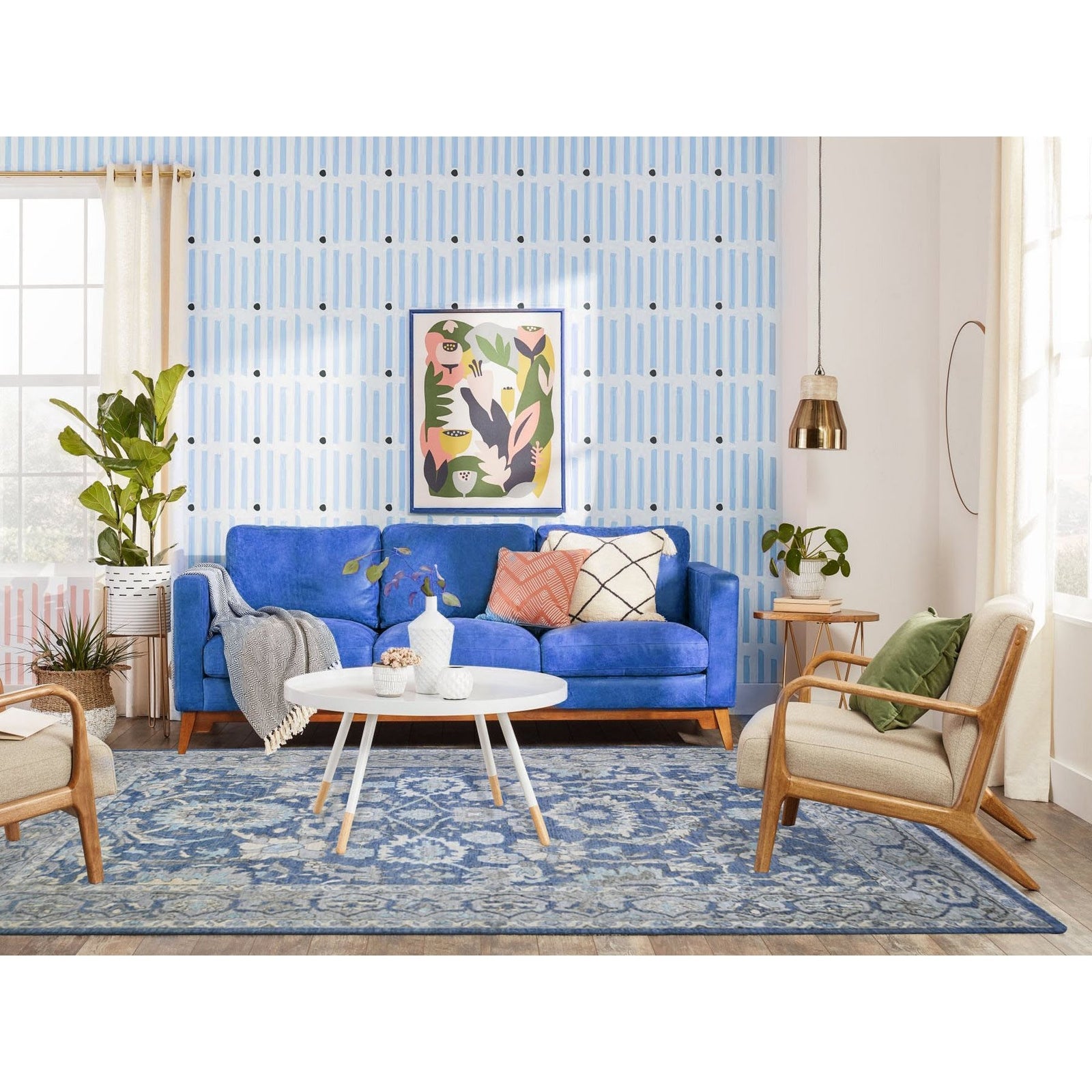6'2"X8'10" Queen Blue Finer Peshawar Extra Soft Wool Hand Knotted Rug