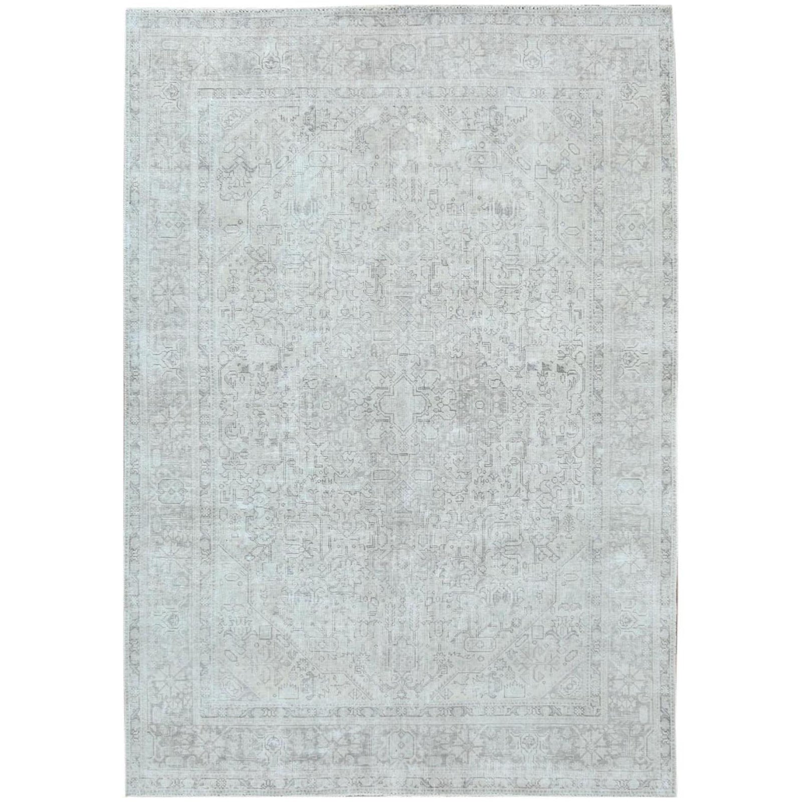 6'5"X9'4" Gray Old Farsian Hand Knotted Worn Down Wool Distressed Rug