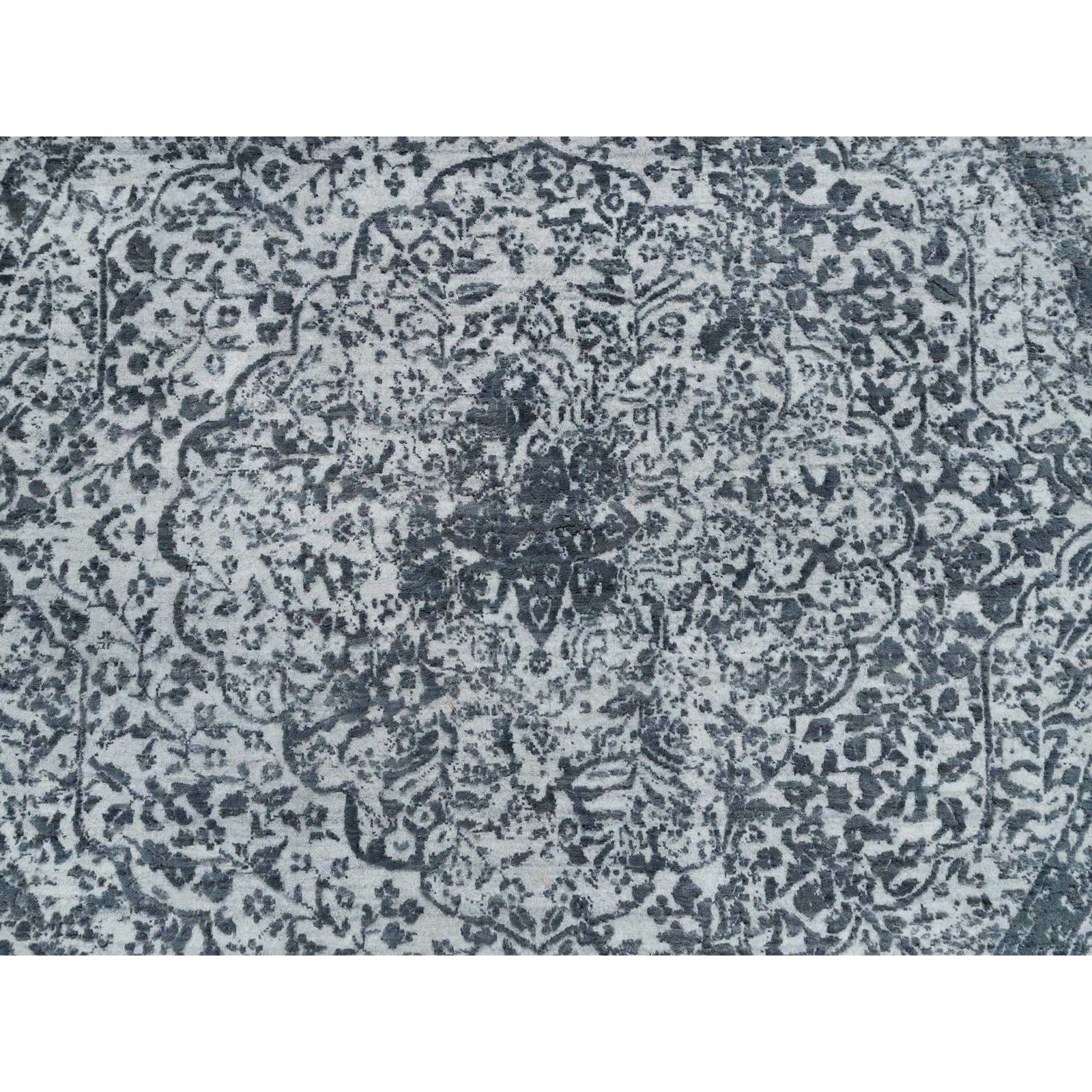 6'X6' Ice Gray Wool And Silk Broken And Erased Hand Knotted Oriental Rug