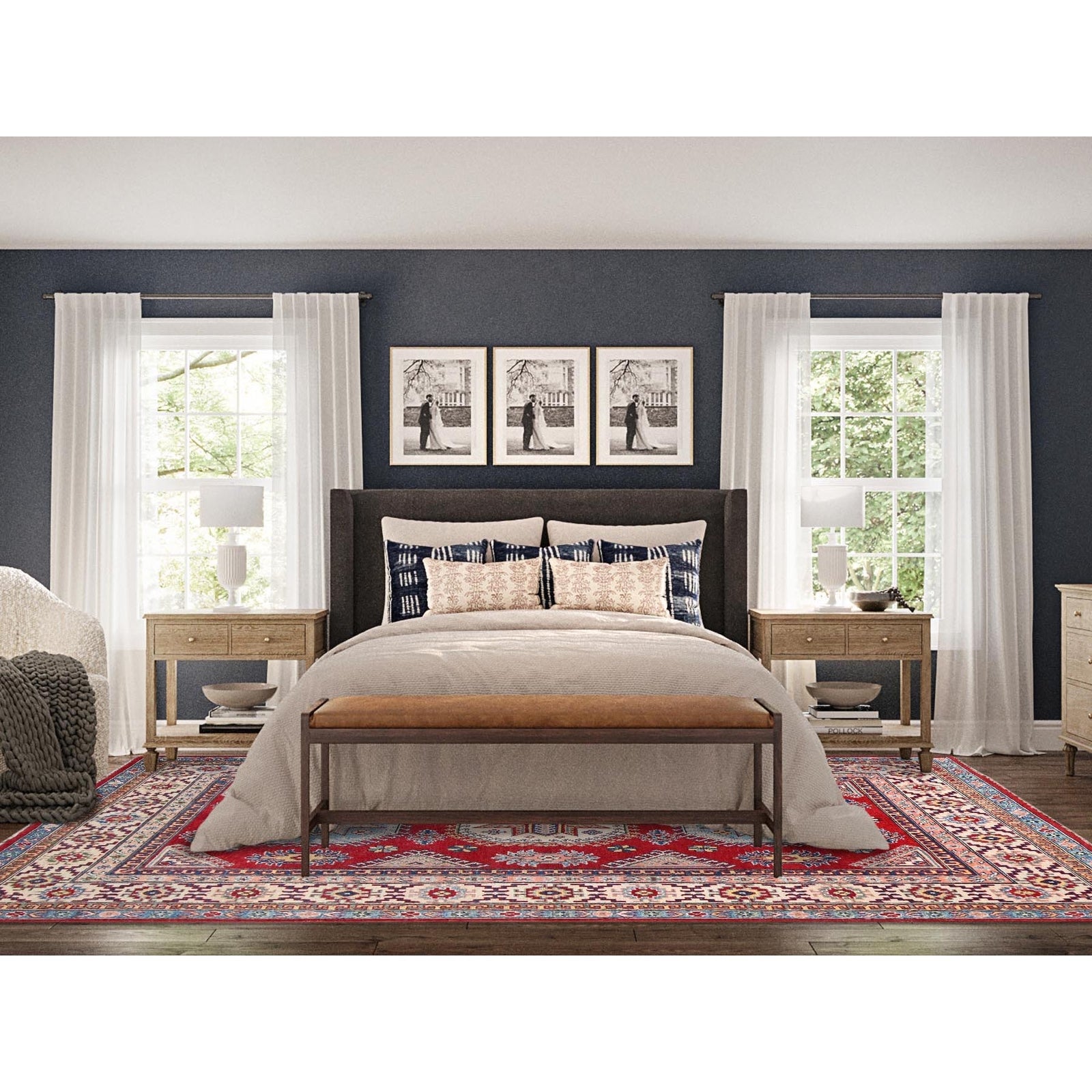 6'X8'9" Toreador Red Hand Knotted Wool Kazak Large Elements Oriental Rug