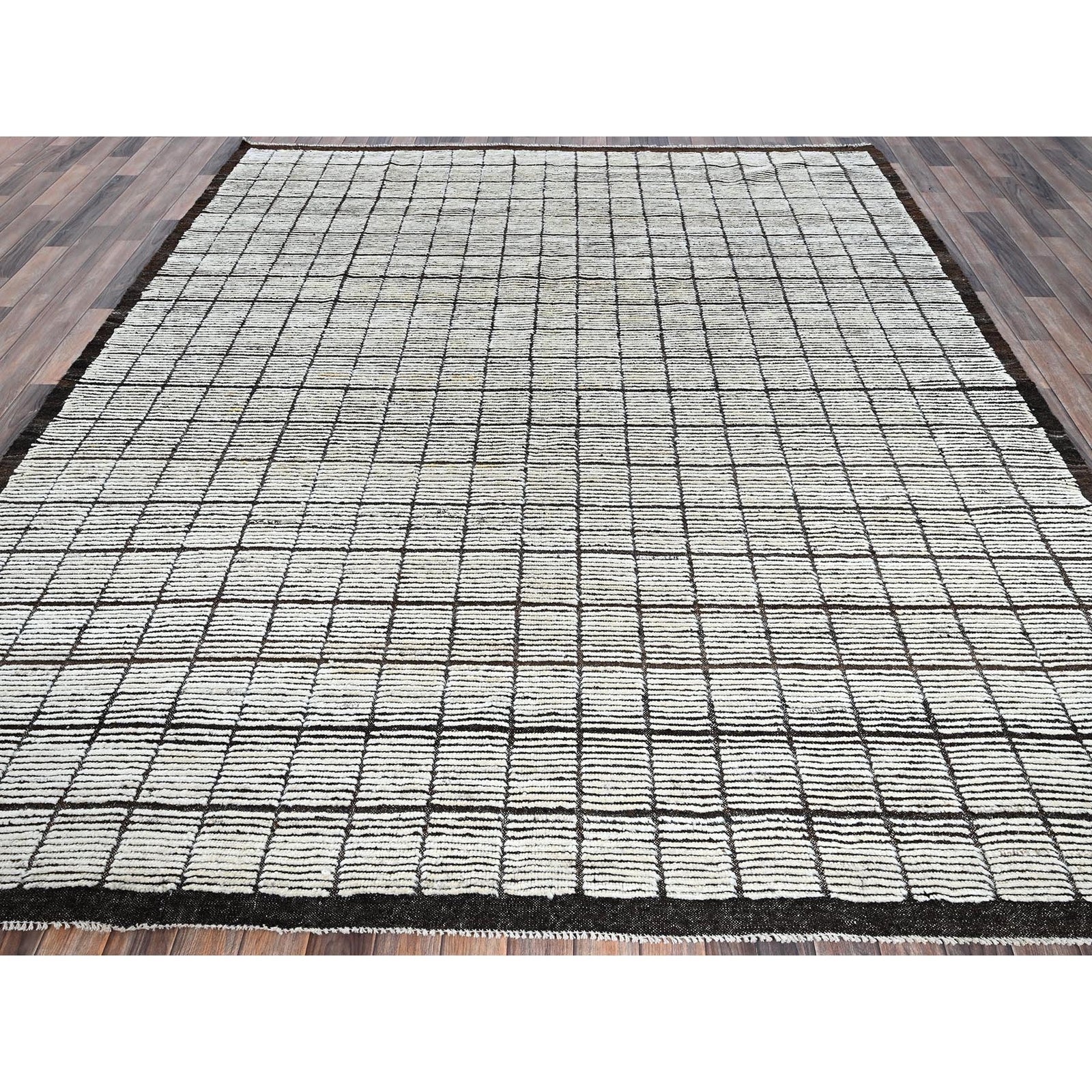 8'4"X9'10" White Moroccan Weave With Box Design 100% Wool Hand Knotted Rug