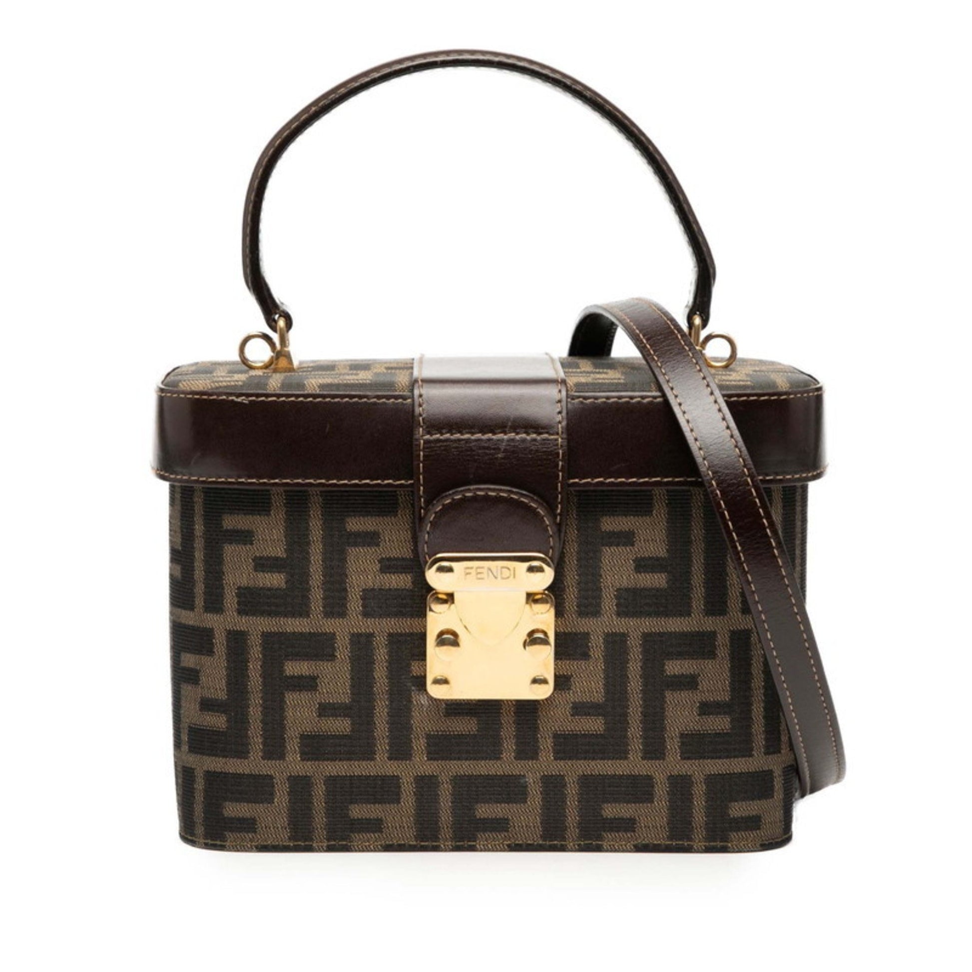 Fendi Zucca Shoulder Bag Vanity 2-Way Brown Canvas Leather