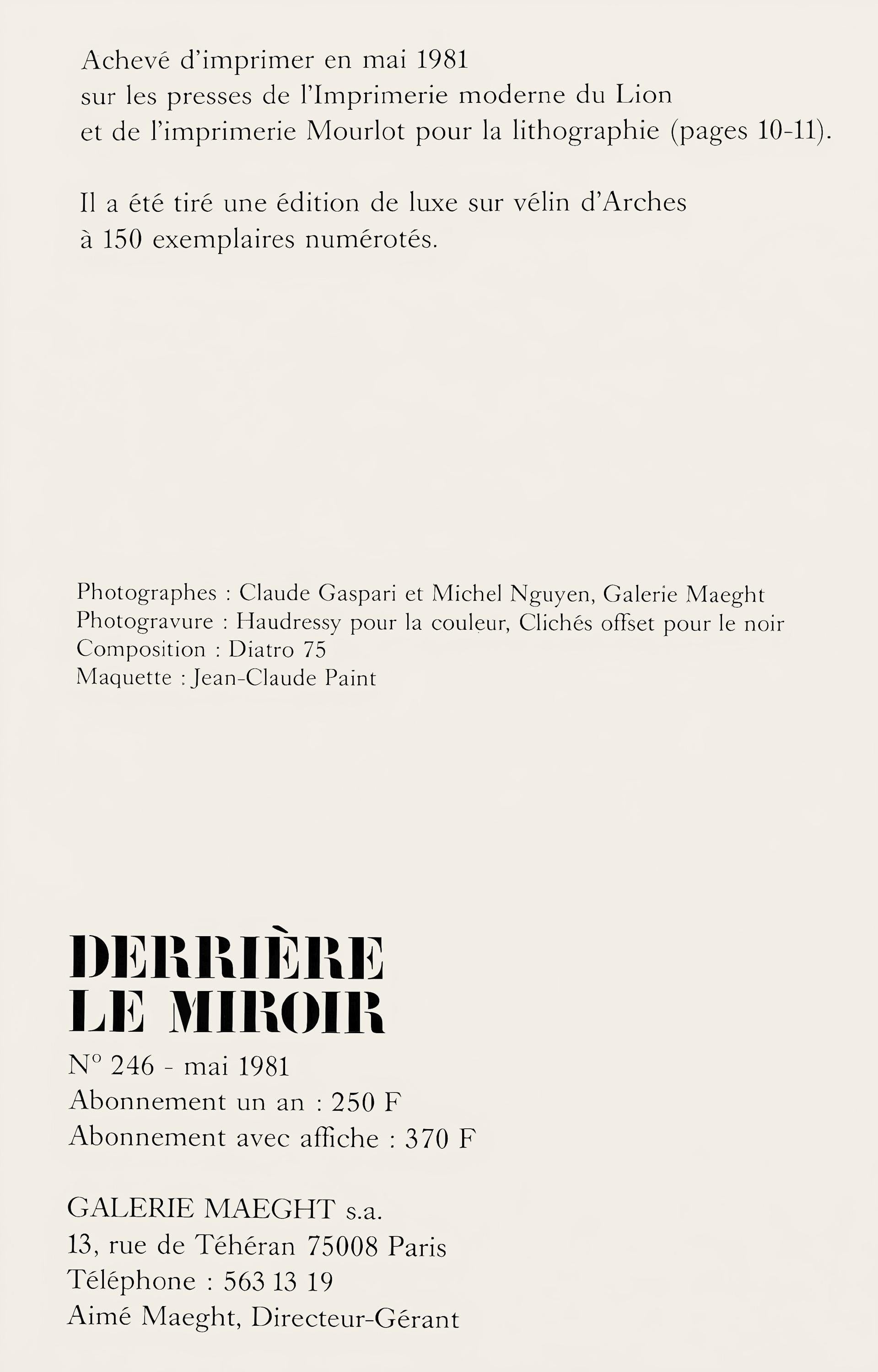 Published by Aim Maeght, diteur, Paris; printed by ditions Pierre Feu, Galerie Maeght, 1981.