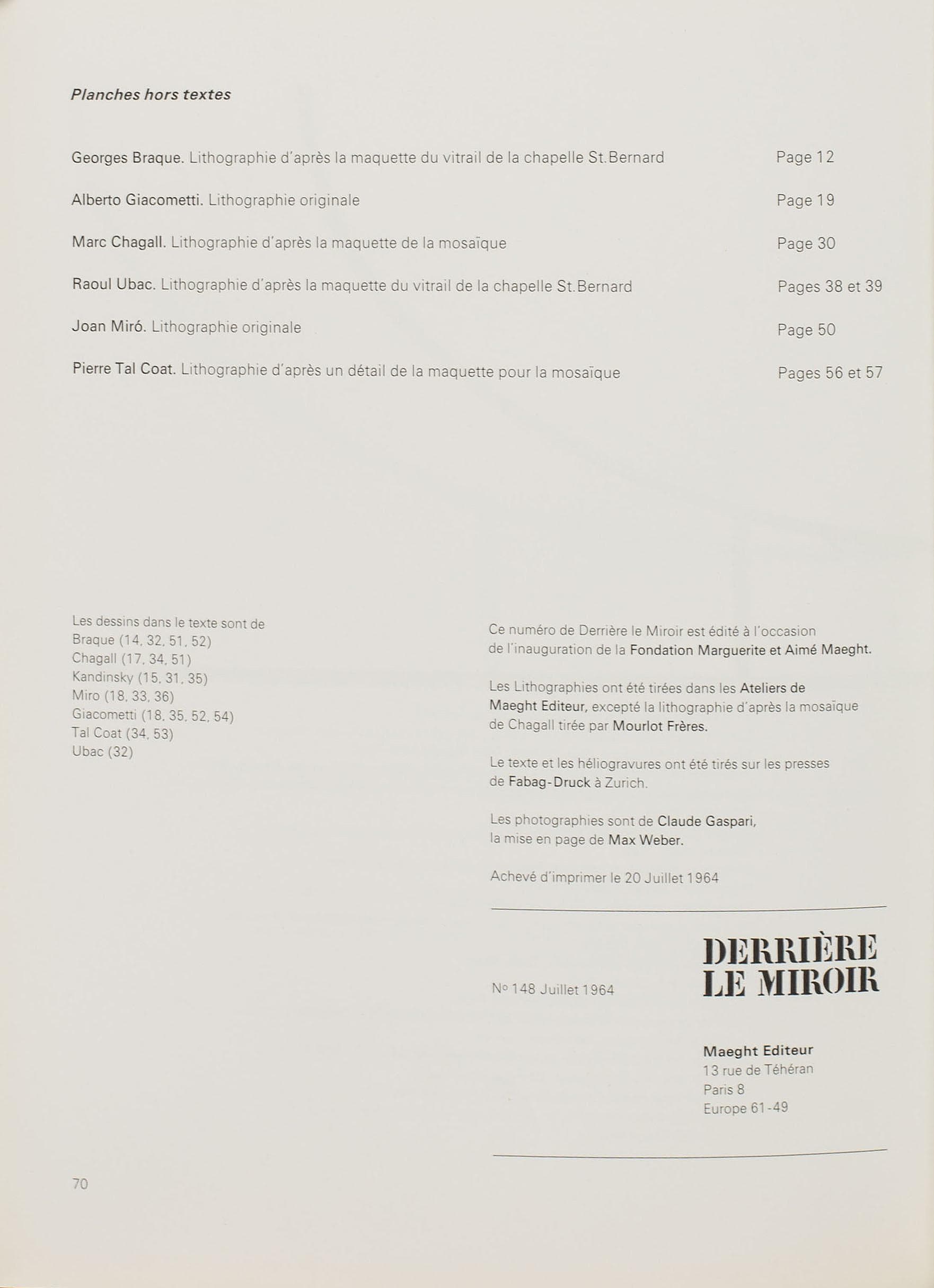 Published by Aim Maeght, diteur, Paris; printed by ditions Pierre Feu, Galerie Maeght, Paris.
