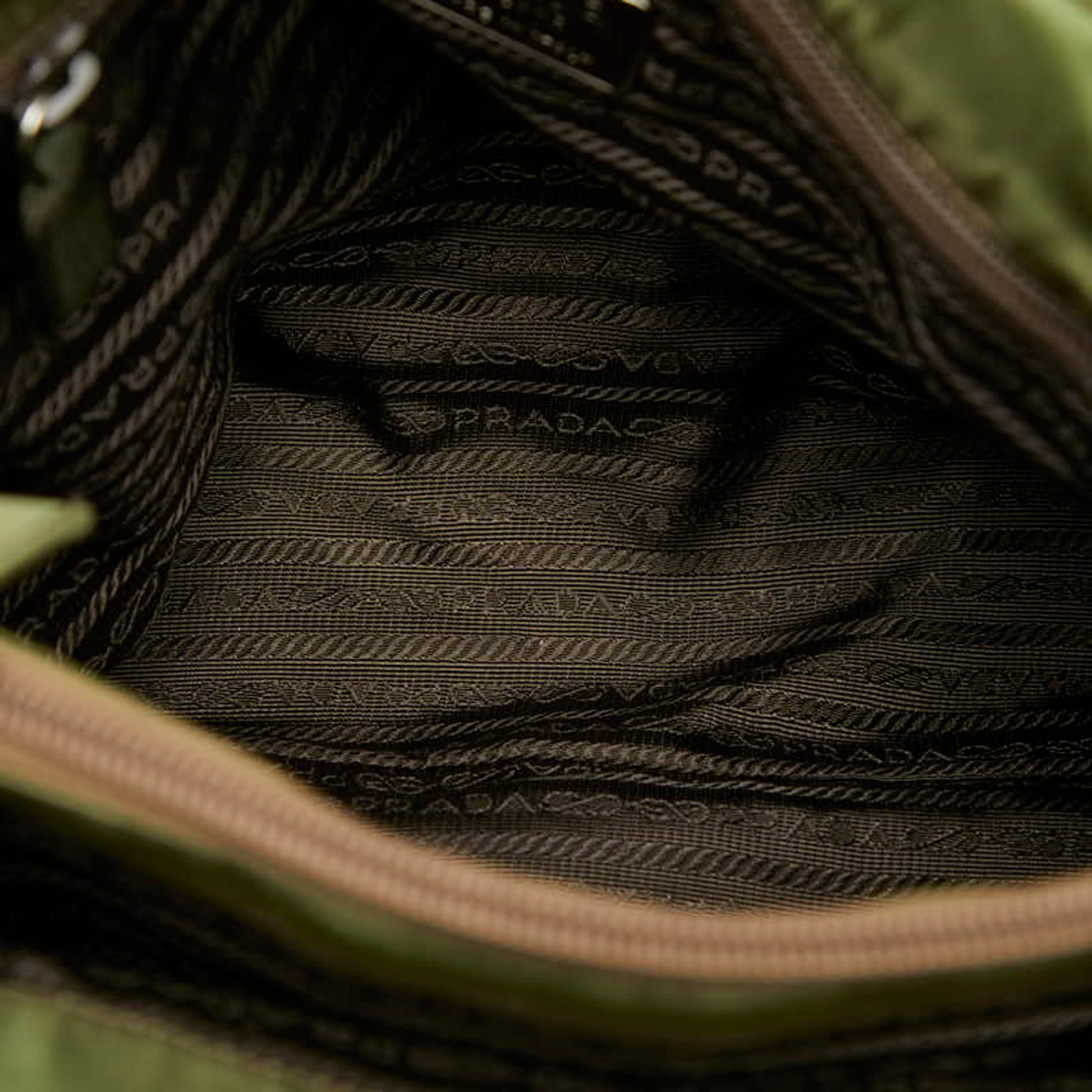 Prada Triangle Logo Plate Tote Bag Green Nylon