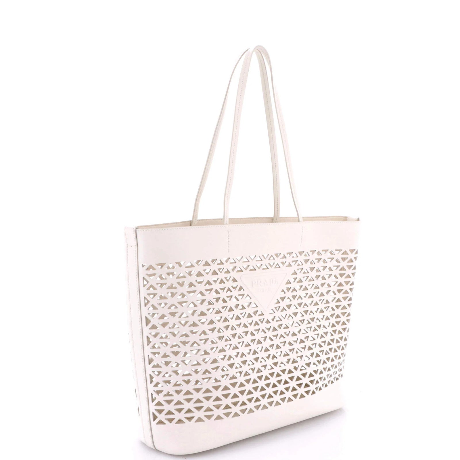 Prada Triangle Logo Shopper Tote Laser Cut Leather Medium