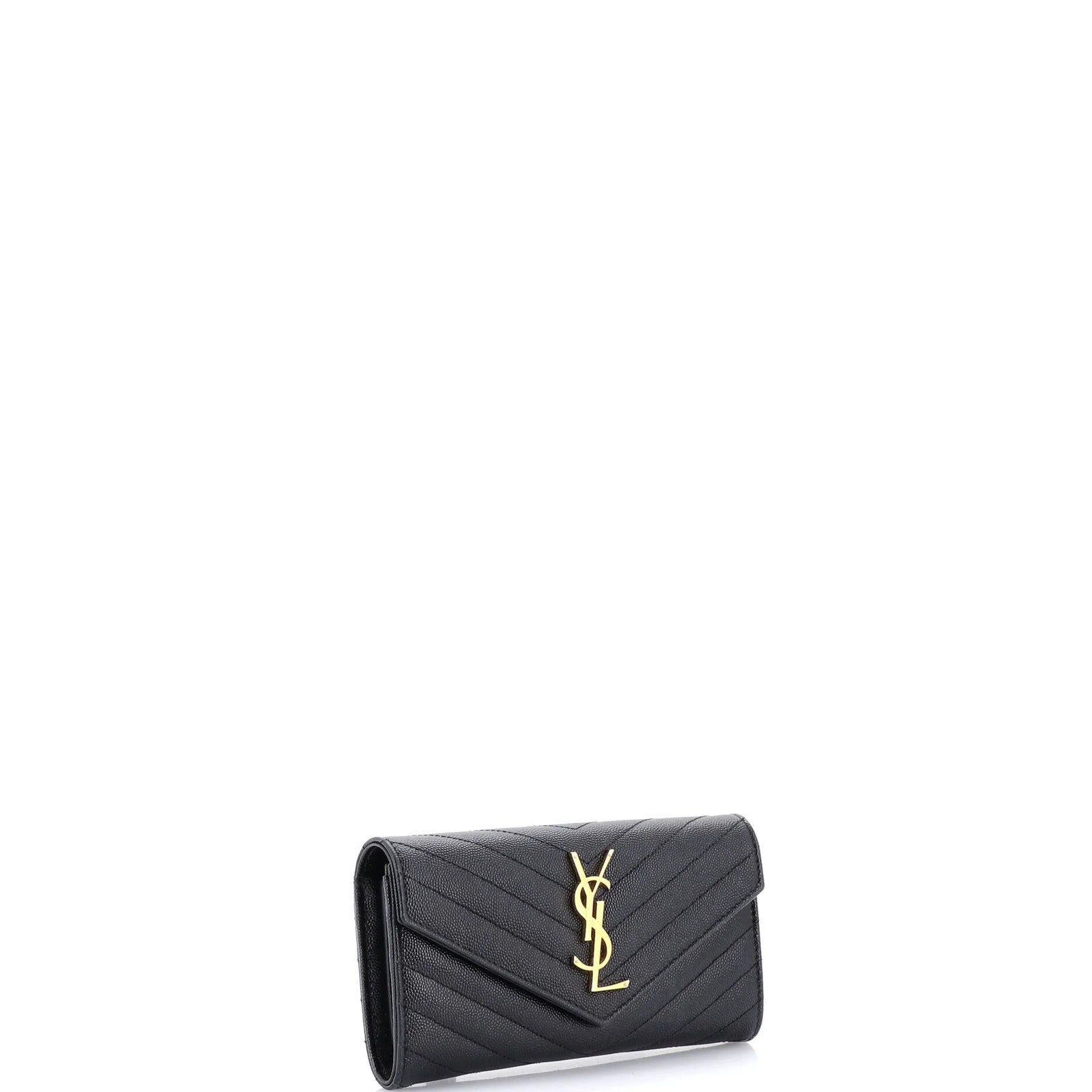 Saint Laurent Classic Monogram Flap Wallet Matelasse Chevron Leather Large