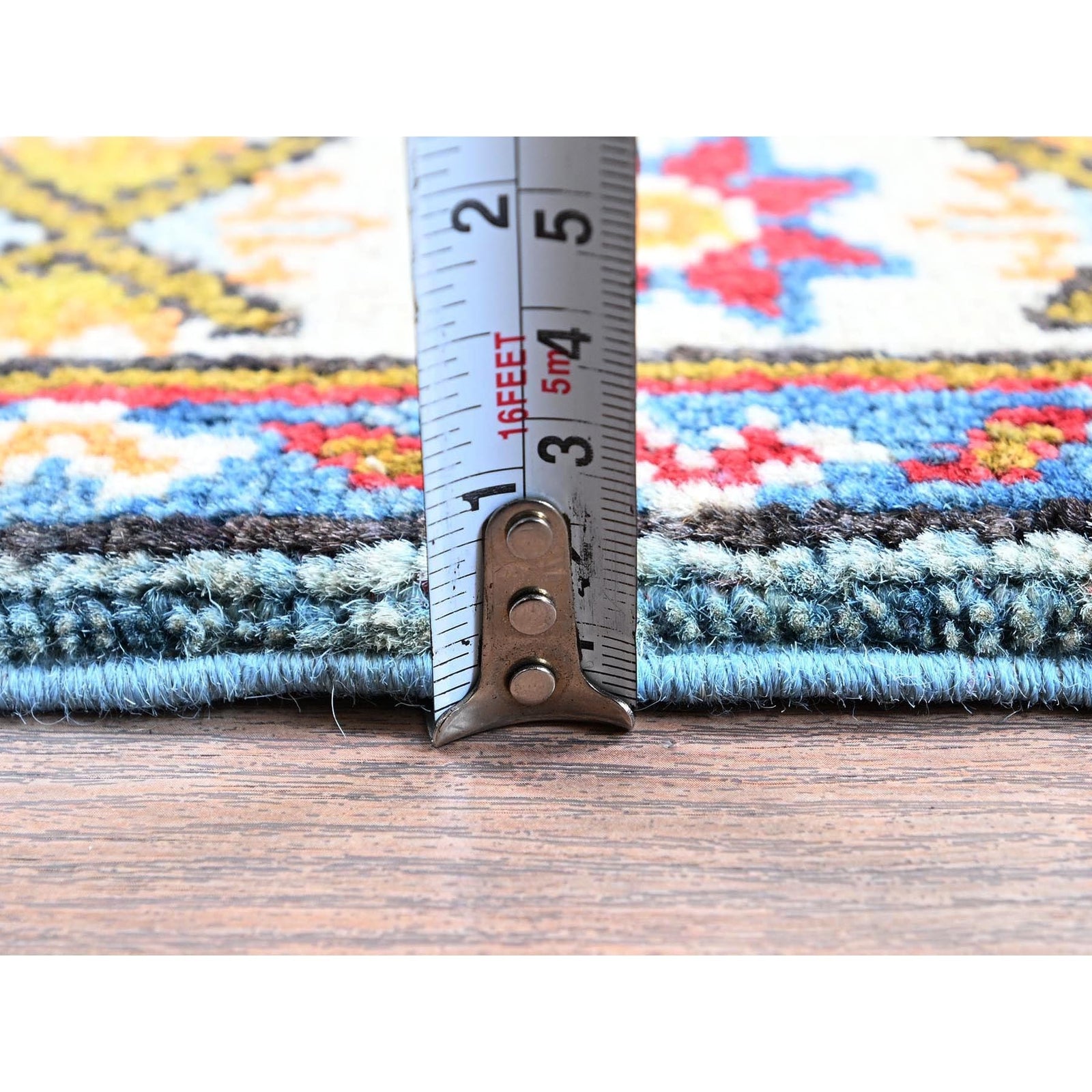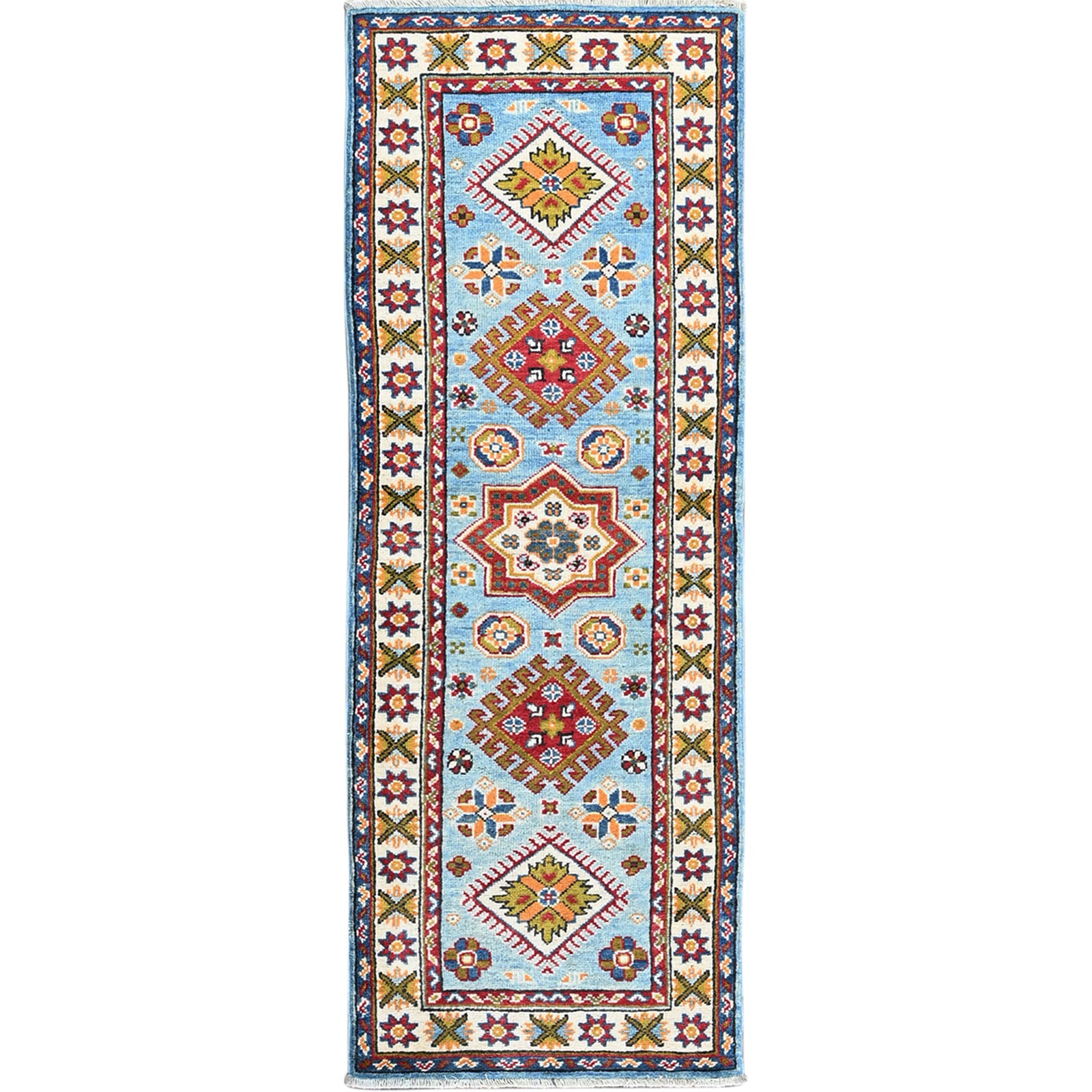 2'1"X5'9" Blue Kazak Geometric Design Hand Knotted Soft Wool Runner Rug