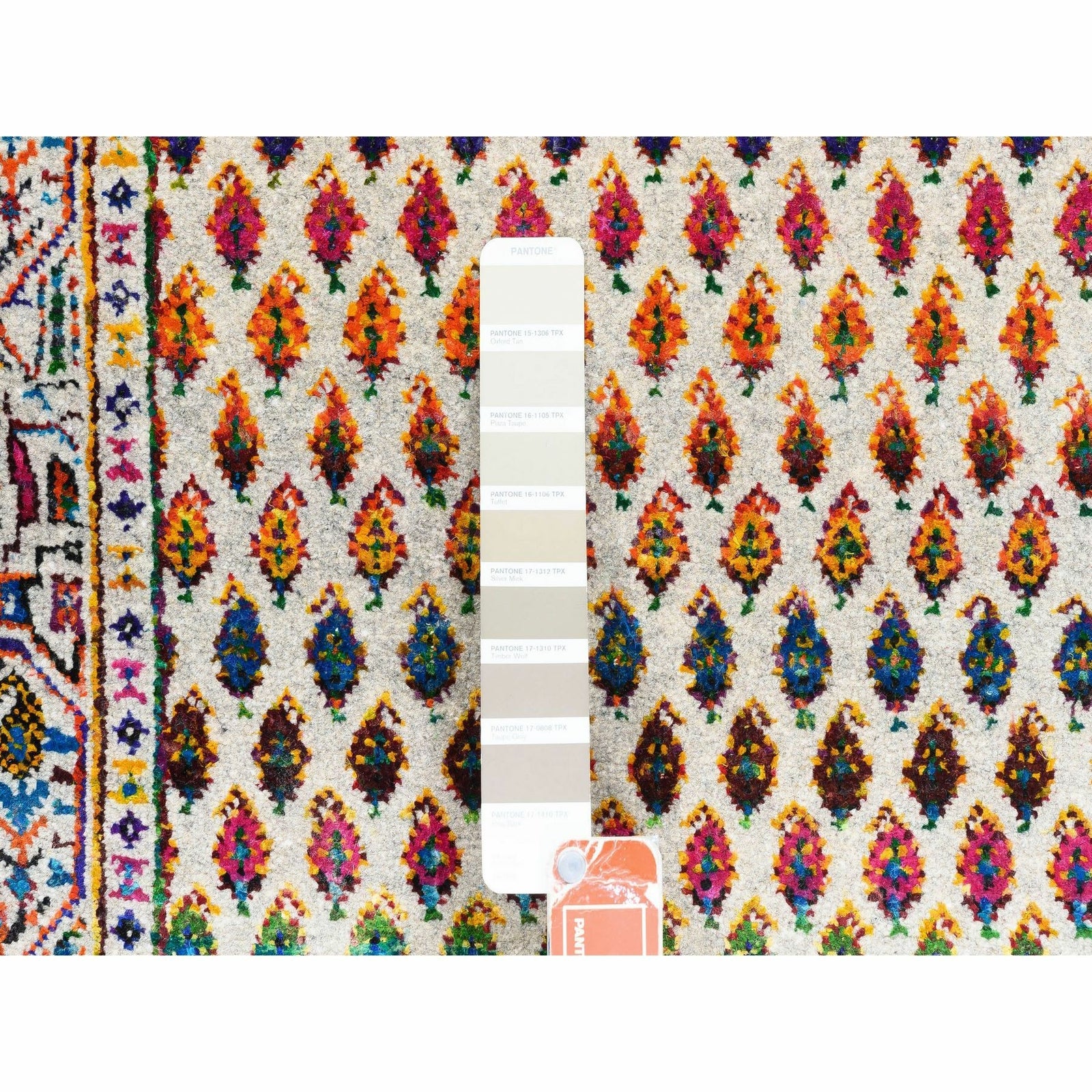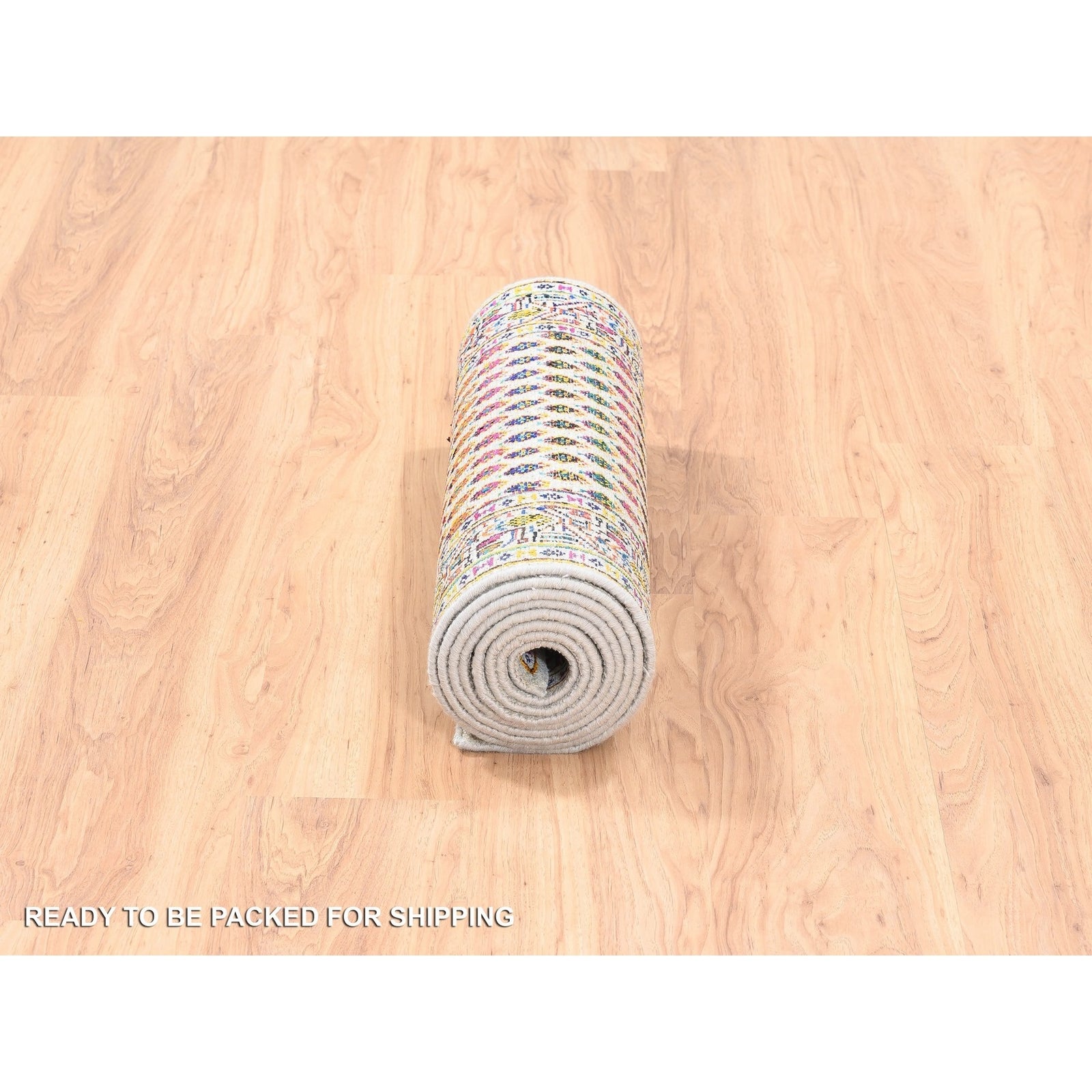 2'4"X10'2" Colorful Wool And Sari Silk Saroogh Hand Knotted Rug