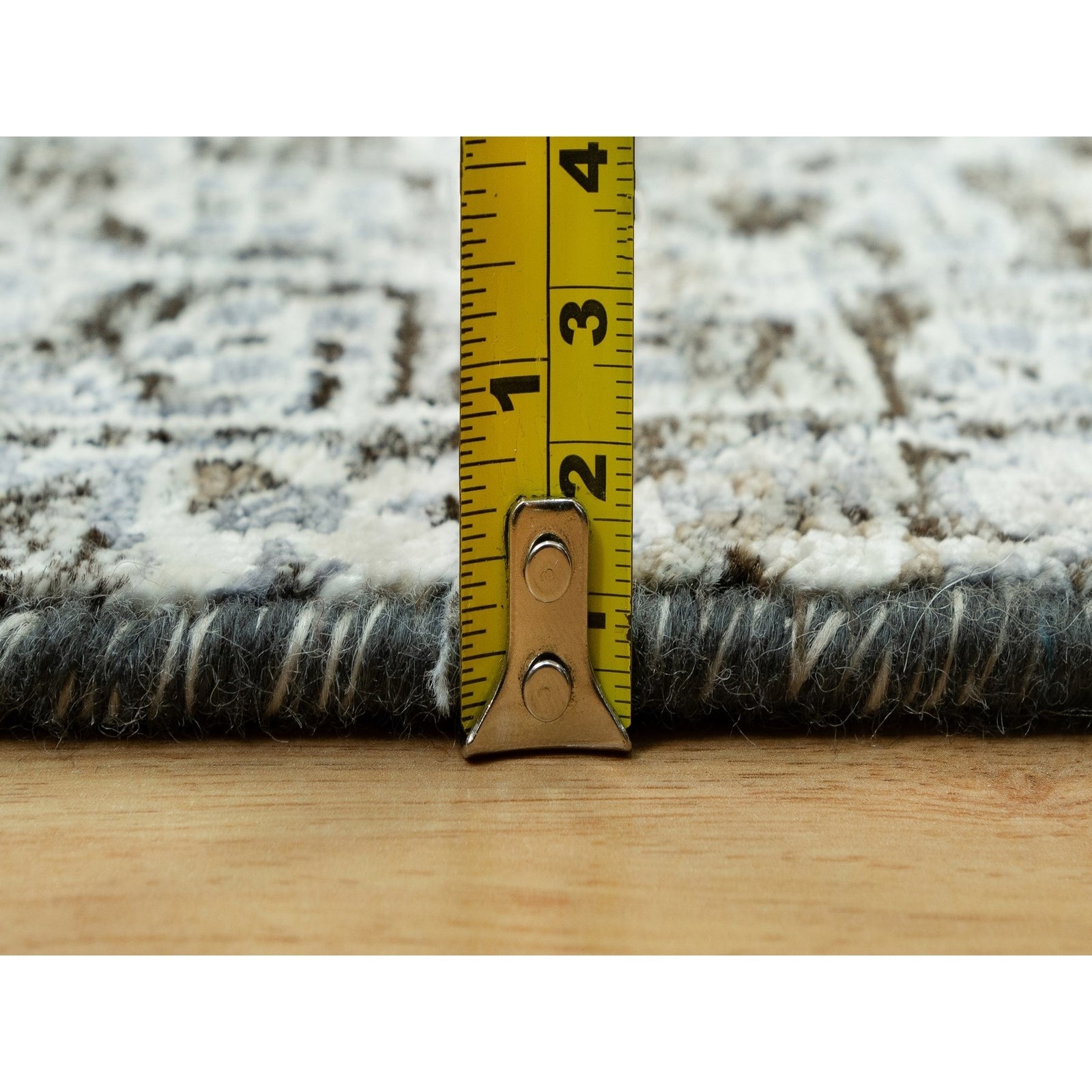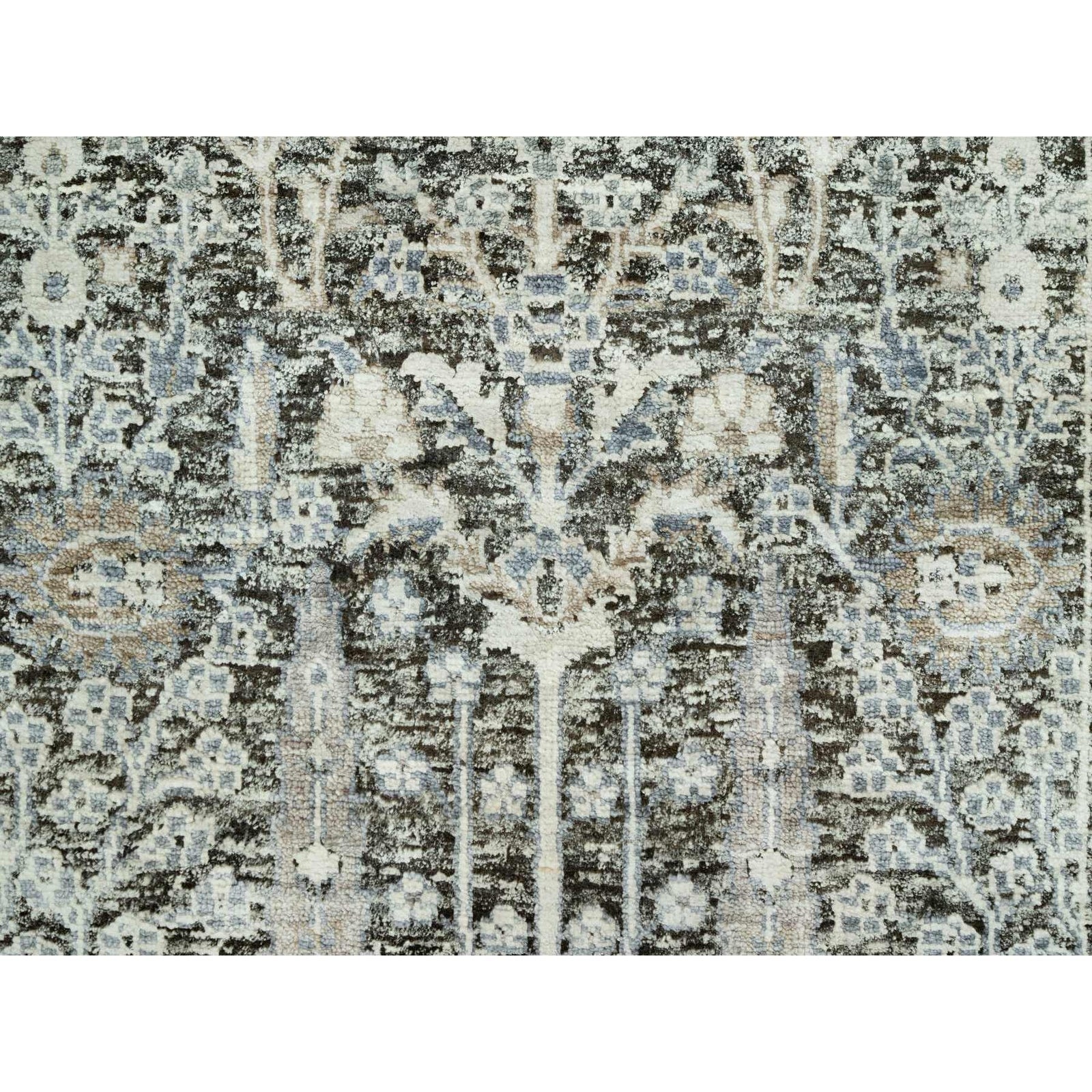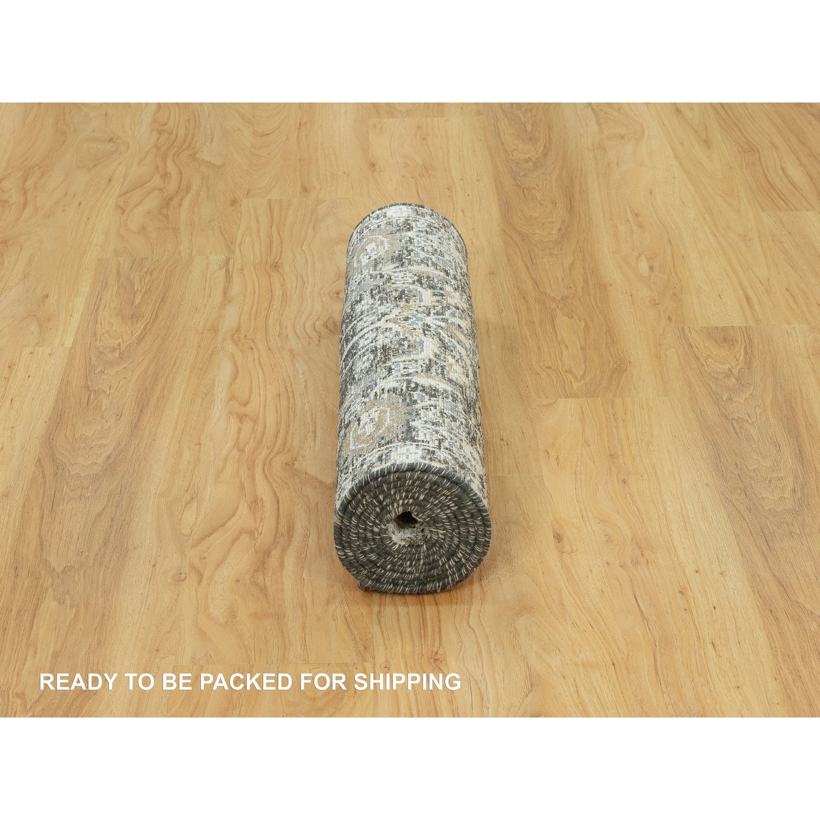 2'4"X8'1" Gray Hand Knotted Silk And Wool Willow And Cypress Tree Rug