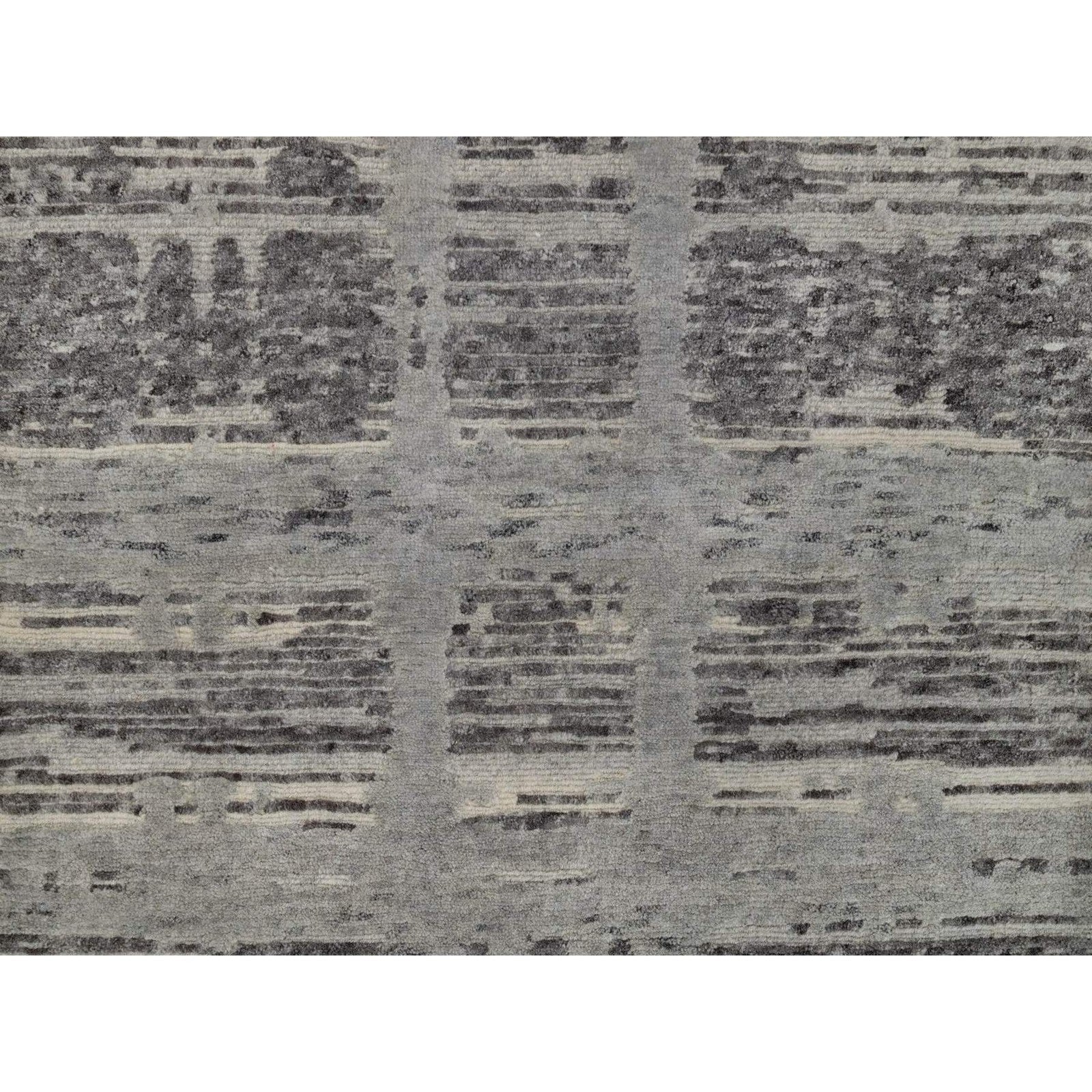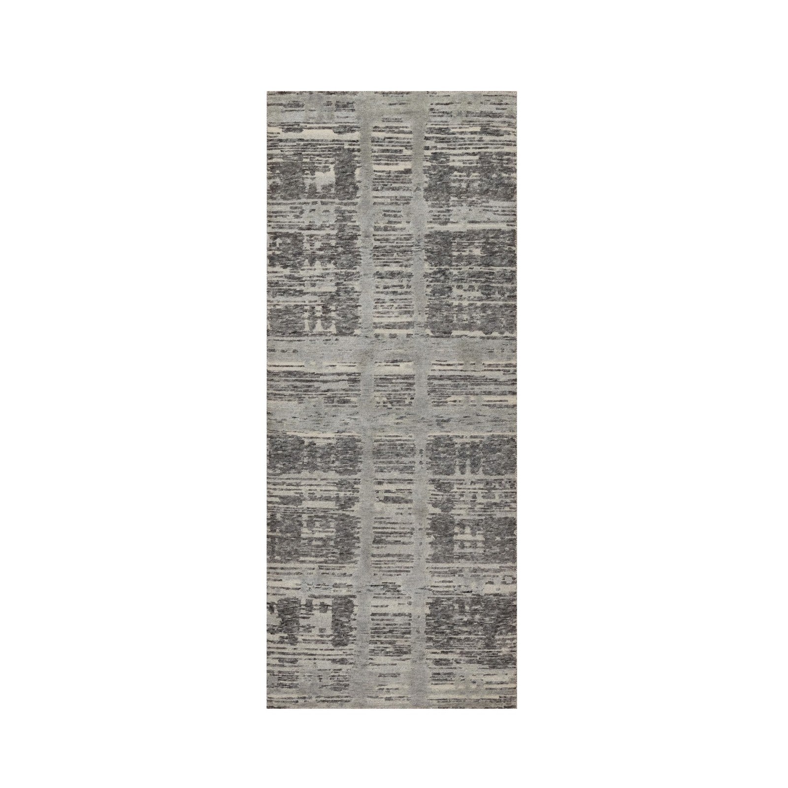 2'5"X6'2" Gray Modern Runner Rug Criss Cross Design Pure Wool Hand Knotted