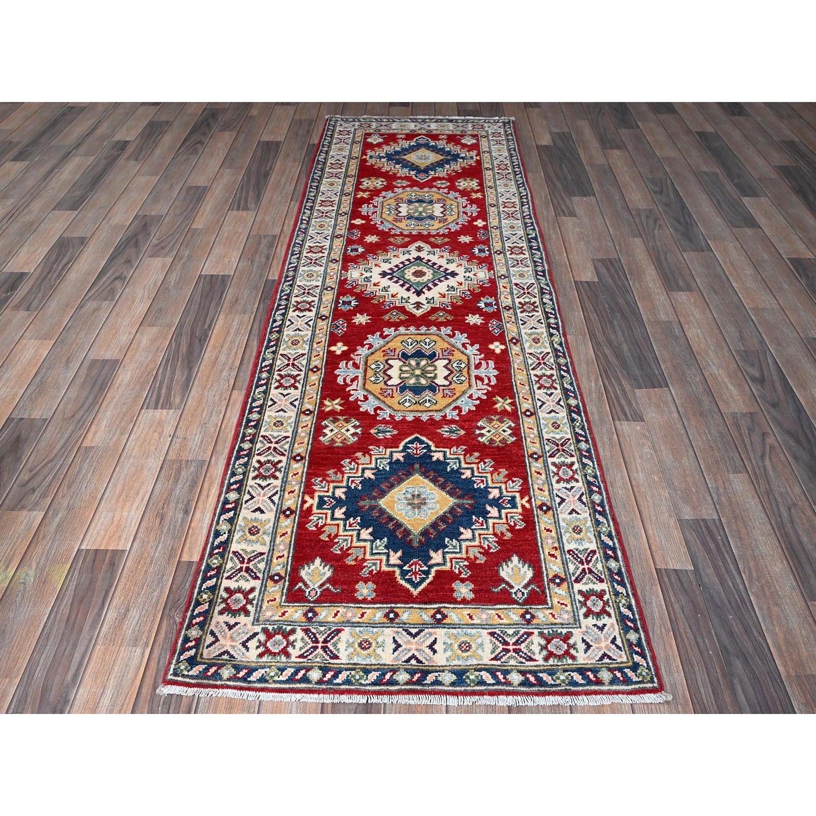 2'7"X8'1" Red Kazak With Tribal Design Hand Knotted Soft Wool Runner Rug
