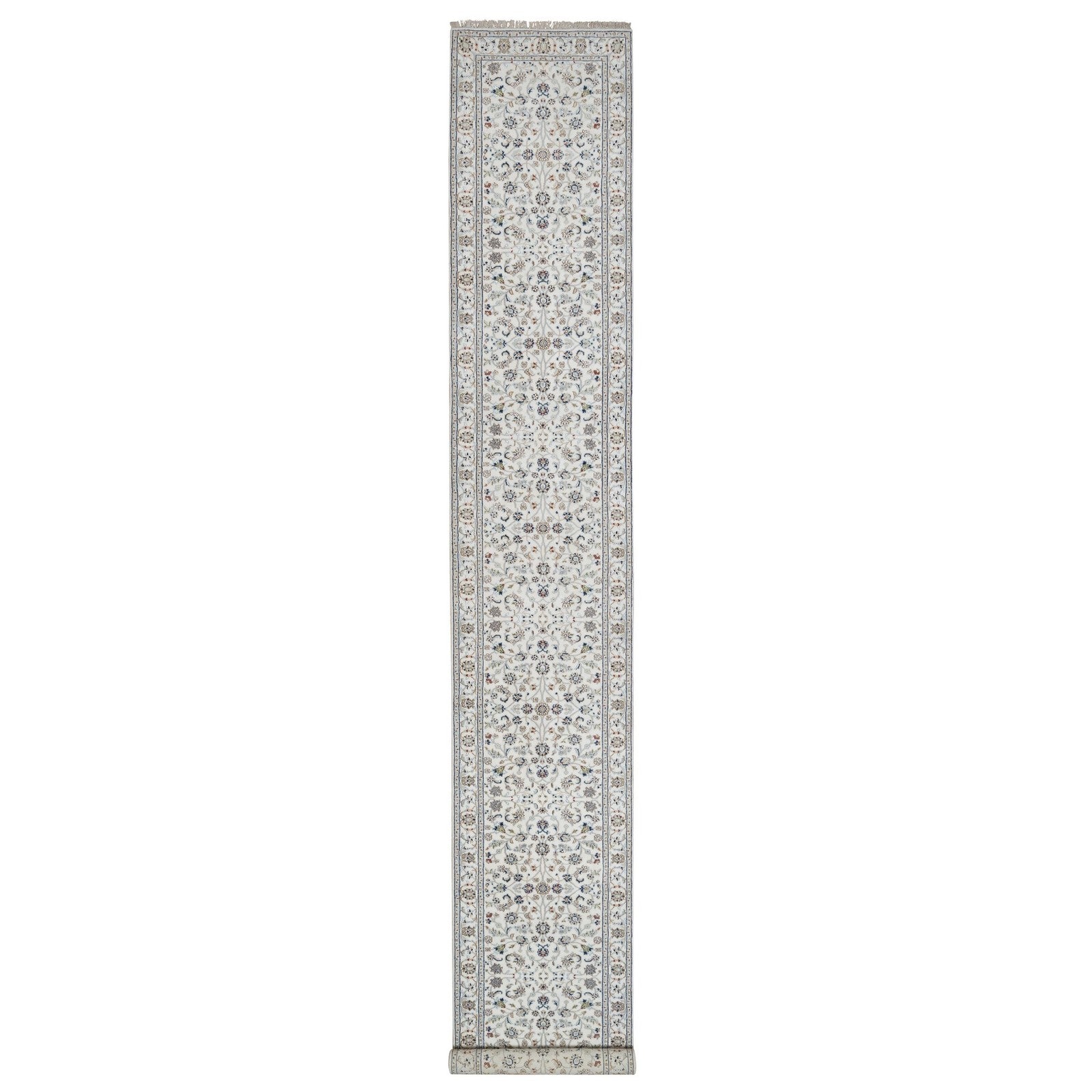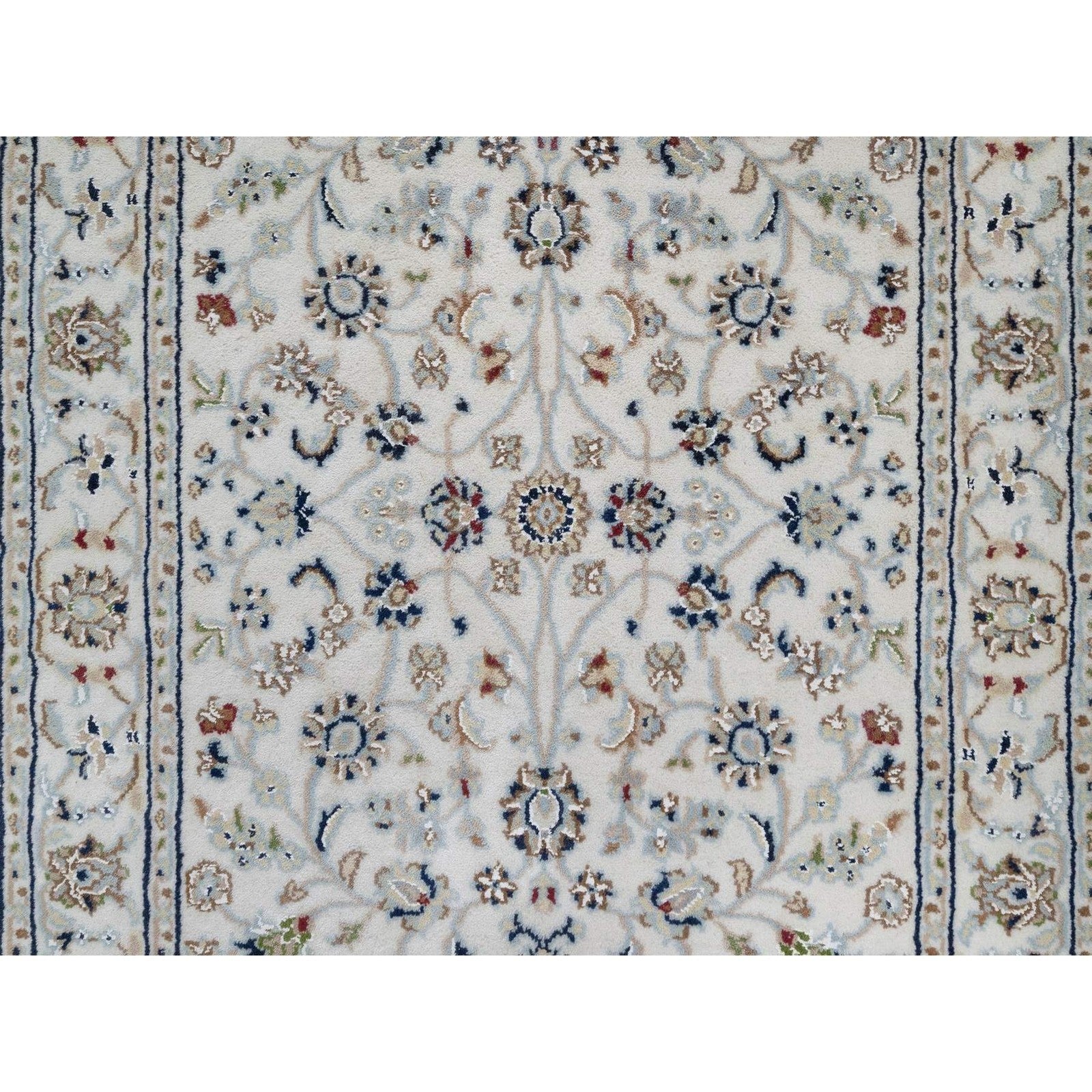 2'9"X18' Ivory Nain Flower Pattern Wool And Silk Hand Knotted Runner Rug