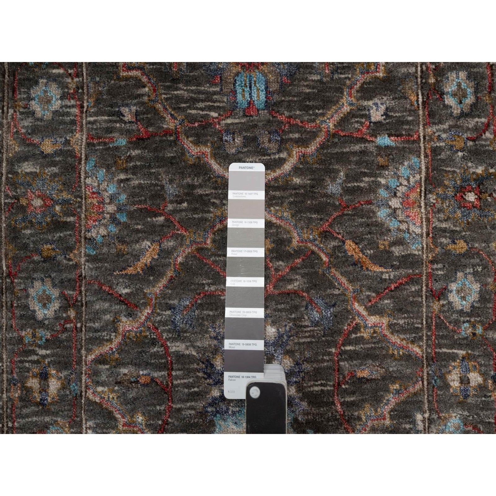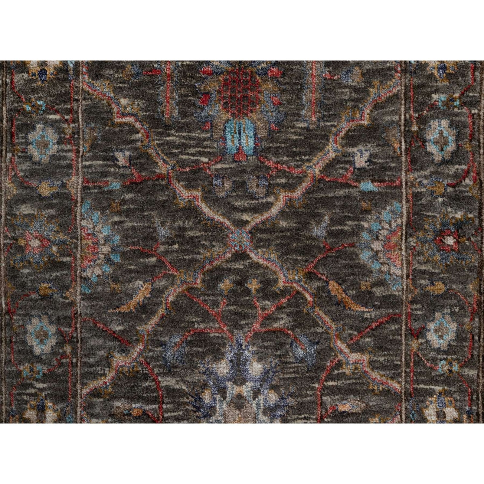 2'X3' Brown Scrolls Leaf Design Hand Knotted Textured & Wool Silk Mat Rug