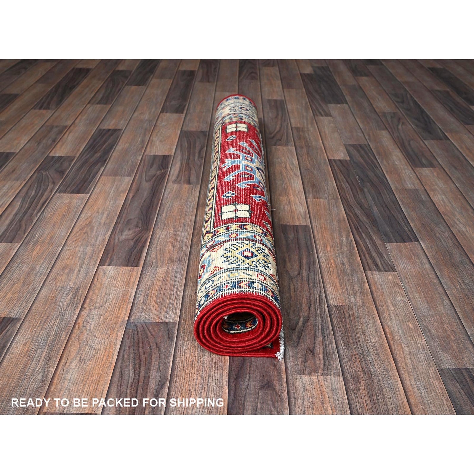3'5"X5' Berry Red Kazak With Geometric Pattern Hand Knotted Pure Wool Rug