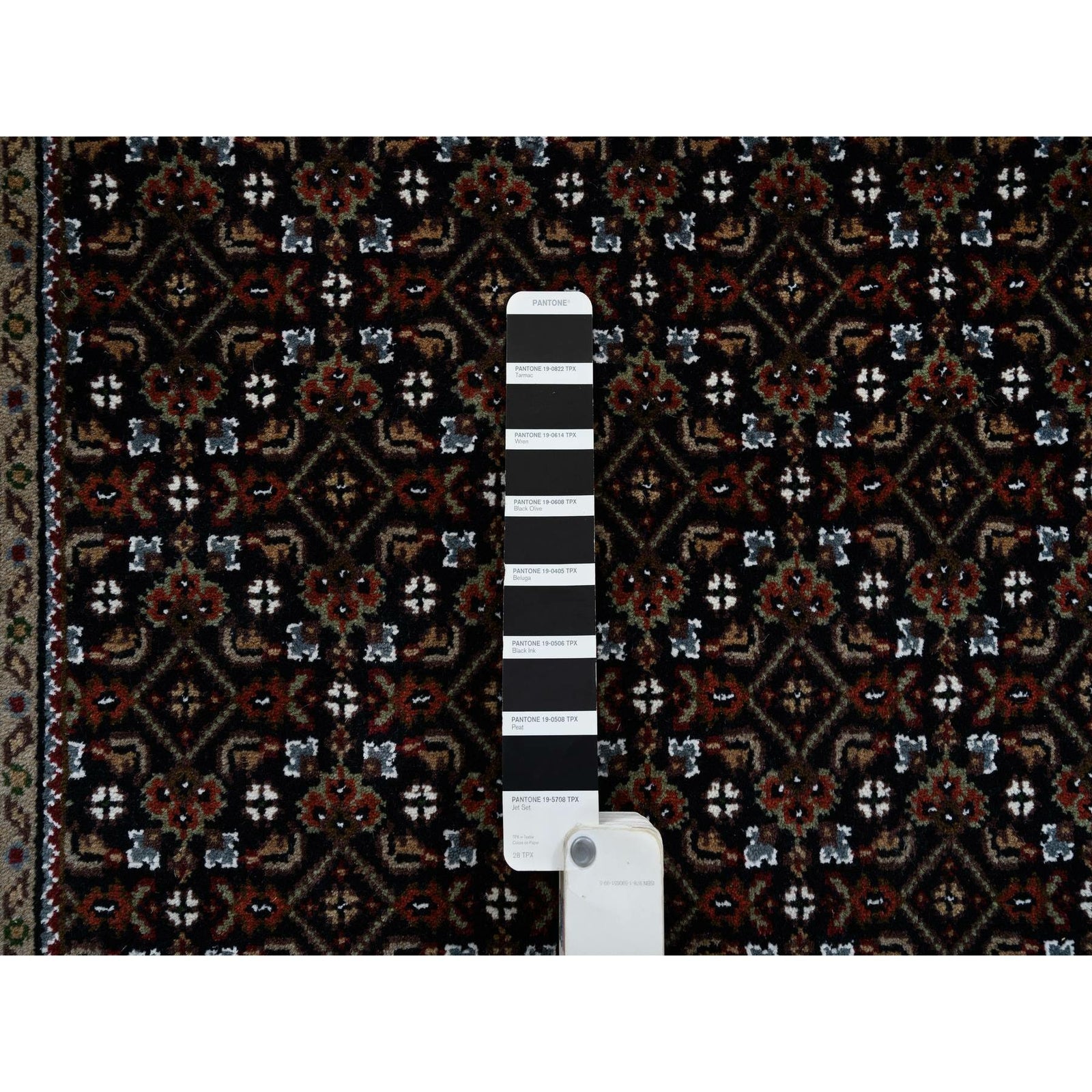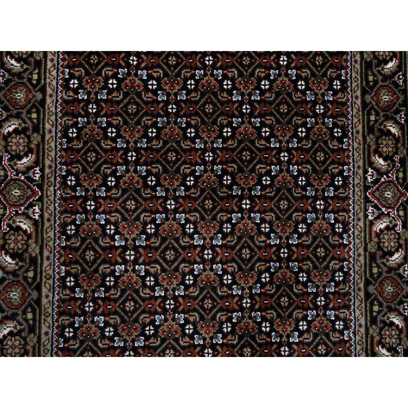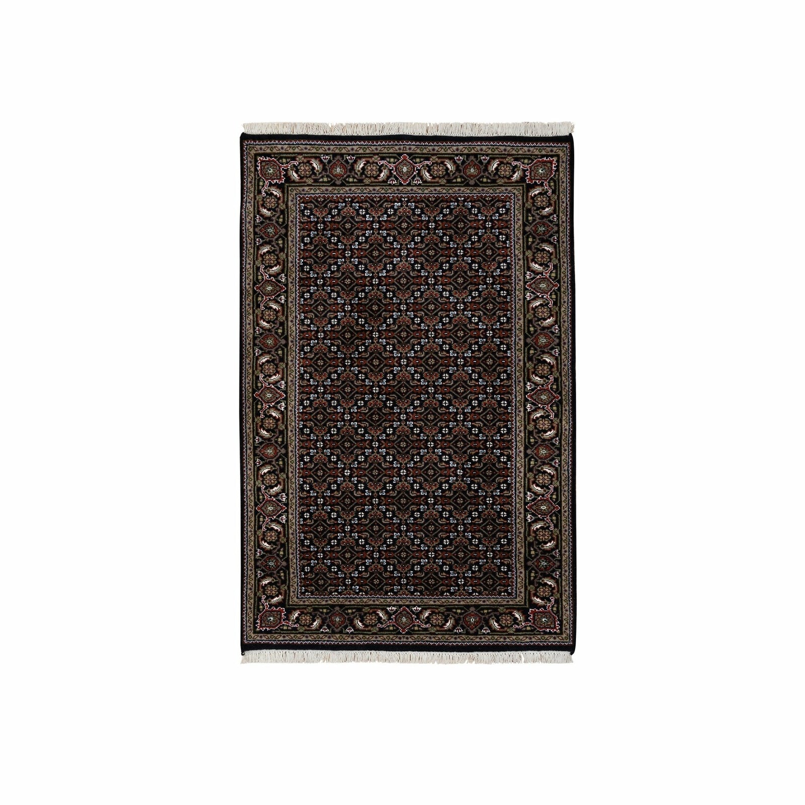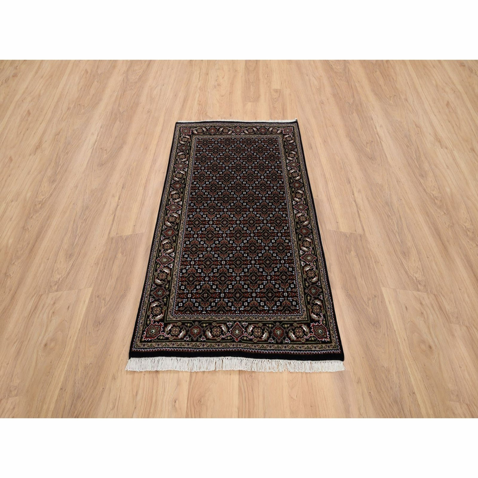 3'X5'2" Black Hand Knotted Wool And Silk Herrita 175 Kpsi Rug