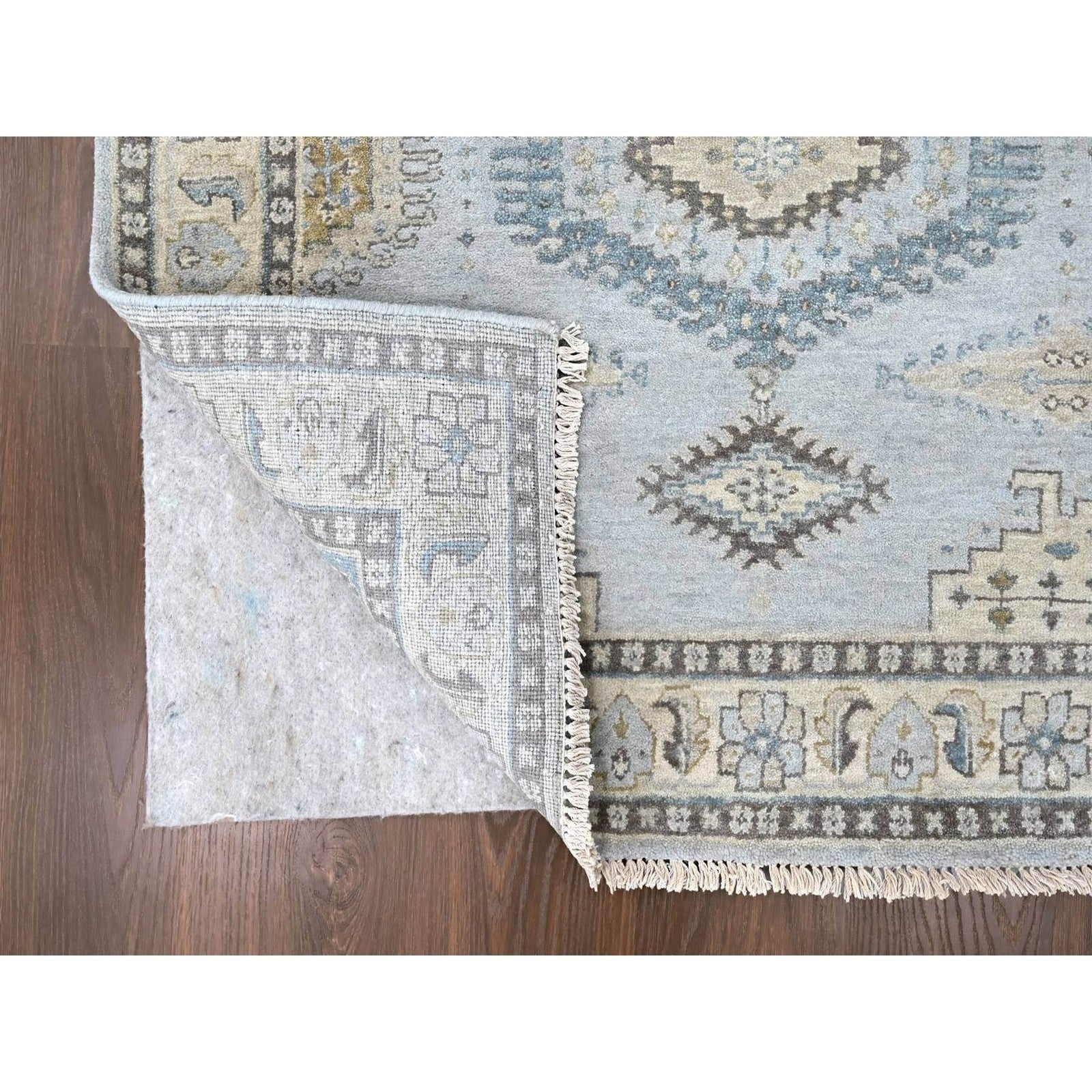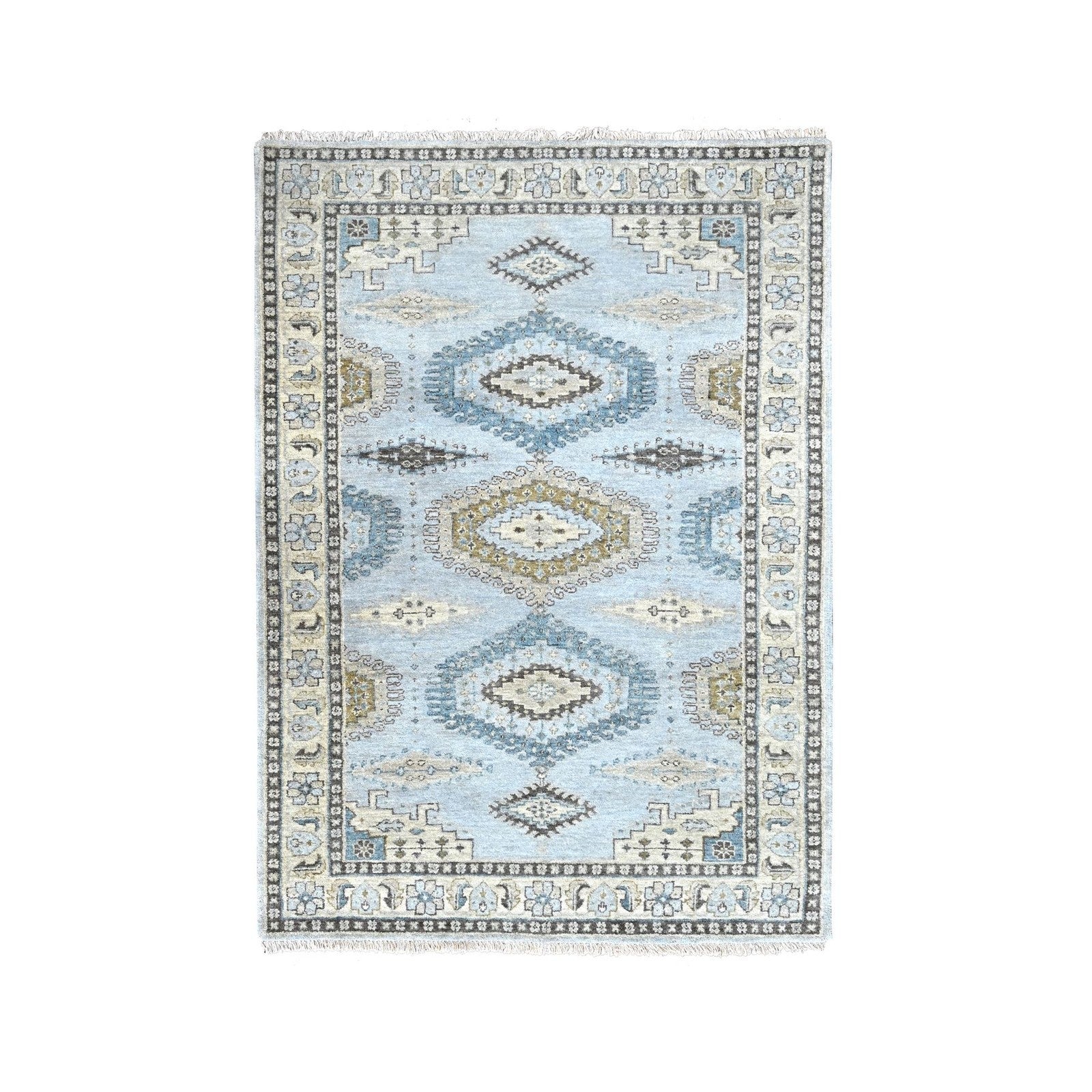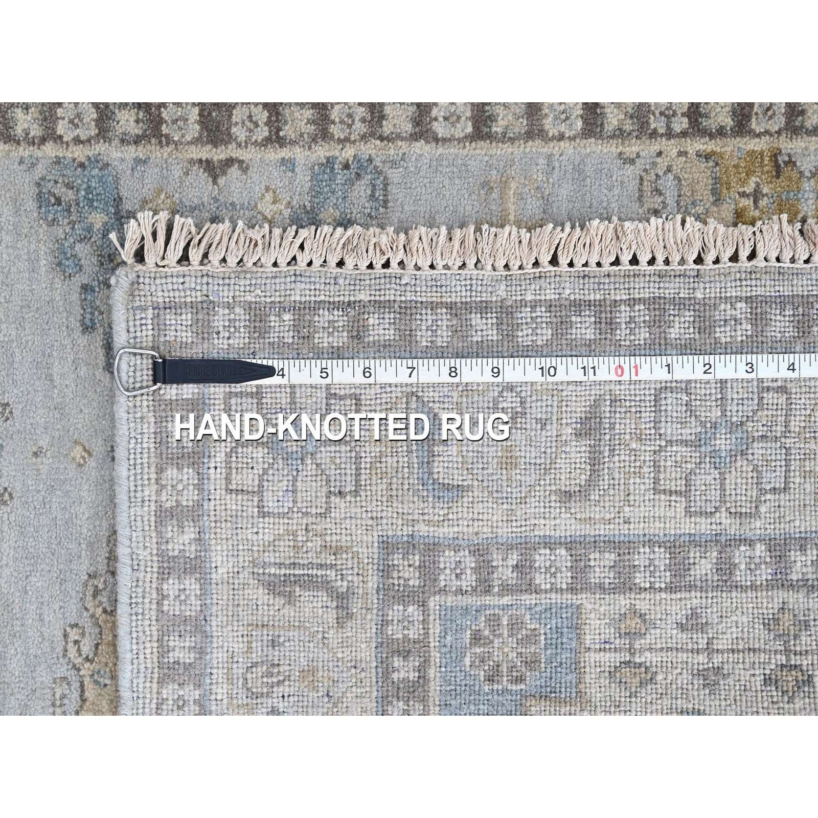 4'1"X6' Gray Village Inspired Geometric Design Pure Wool Hand Knotted Rug