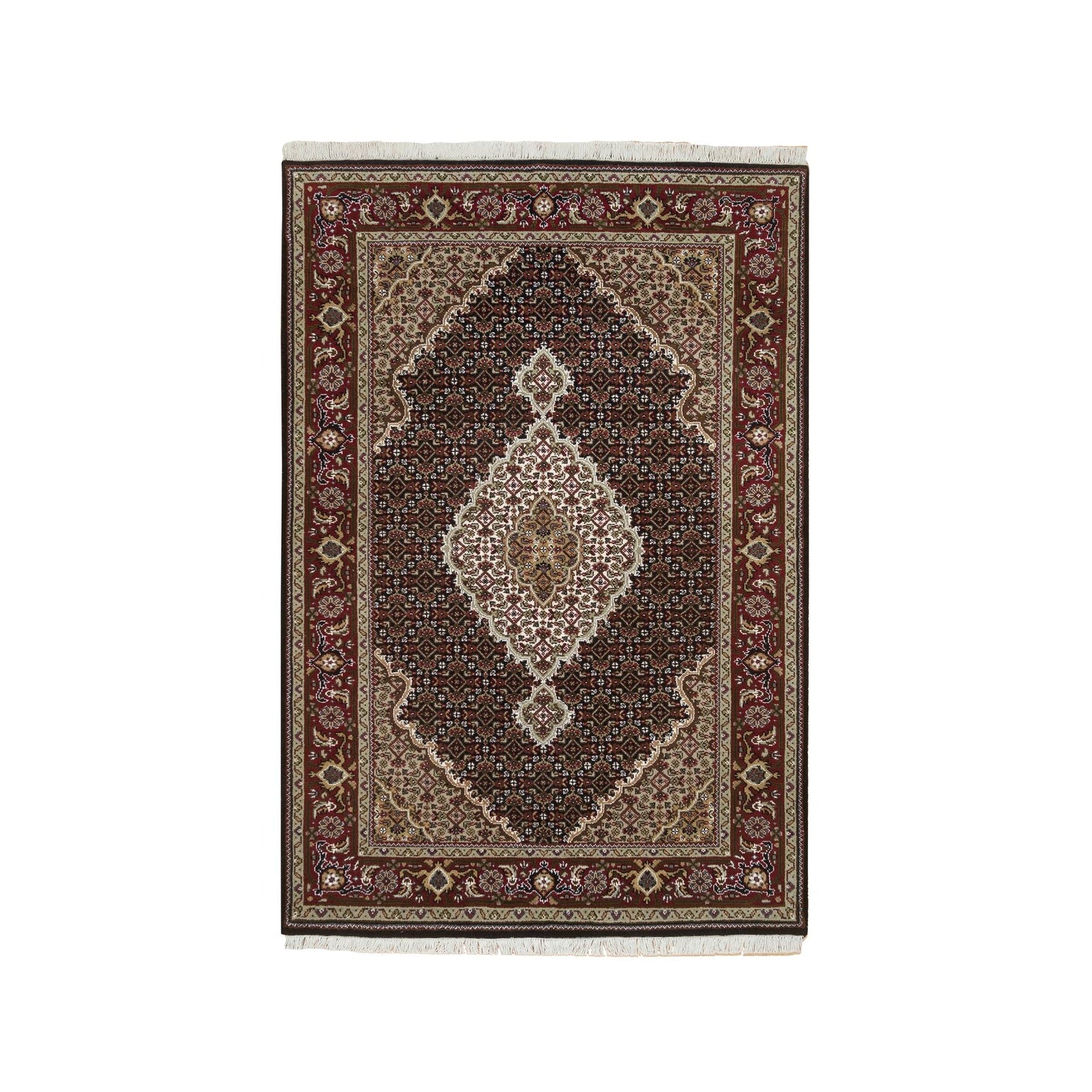 4'1"X6' Rich Black Tebraz Mahi Design 175 Kpsi Hand Knotted Wool Rug