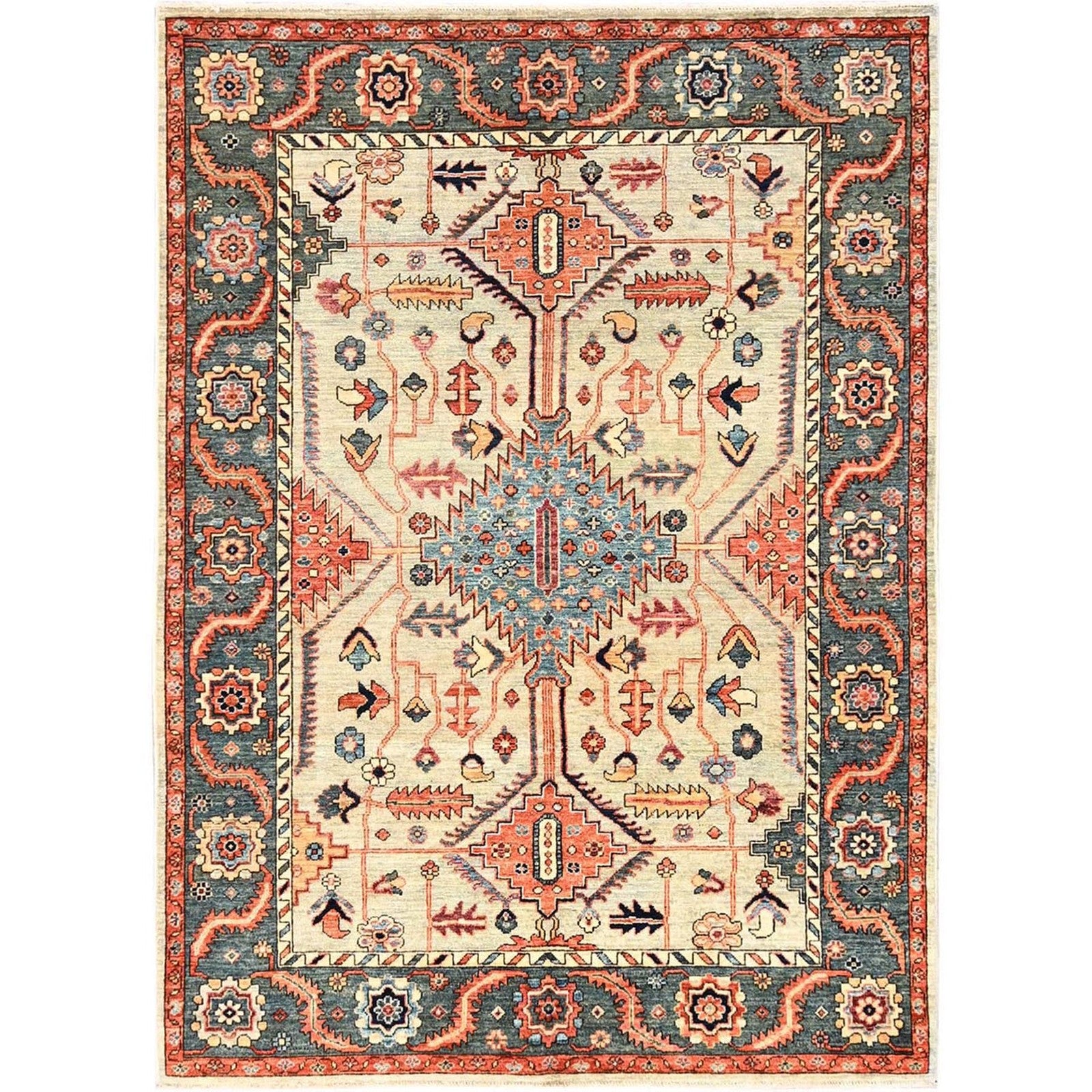 5'X7' Light Green Heris All Over Design Aryana Grade Hand Knotted Wool Rug