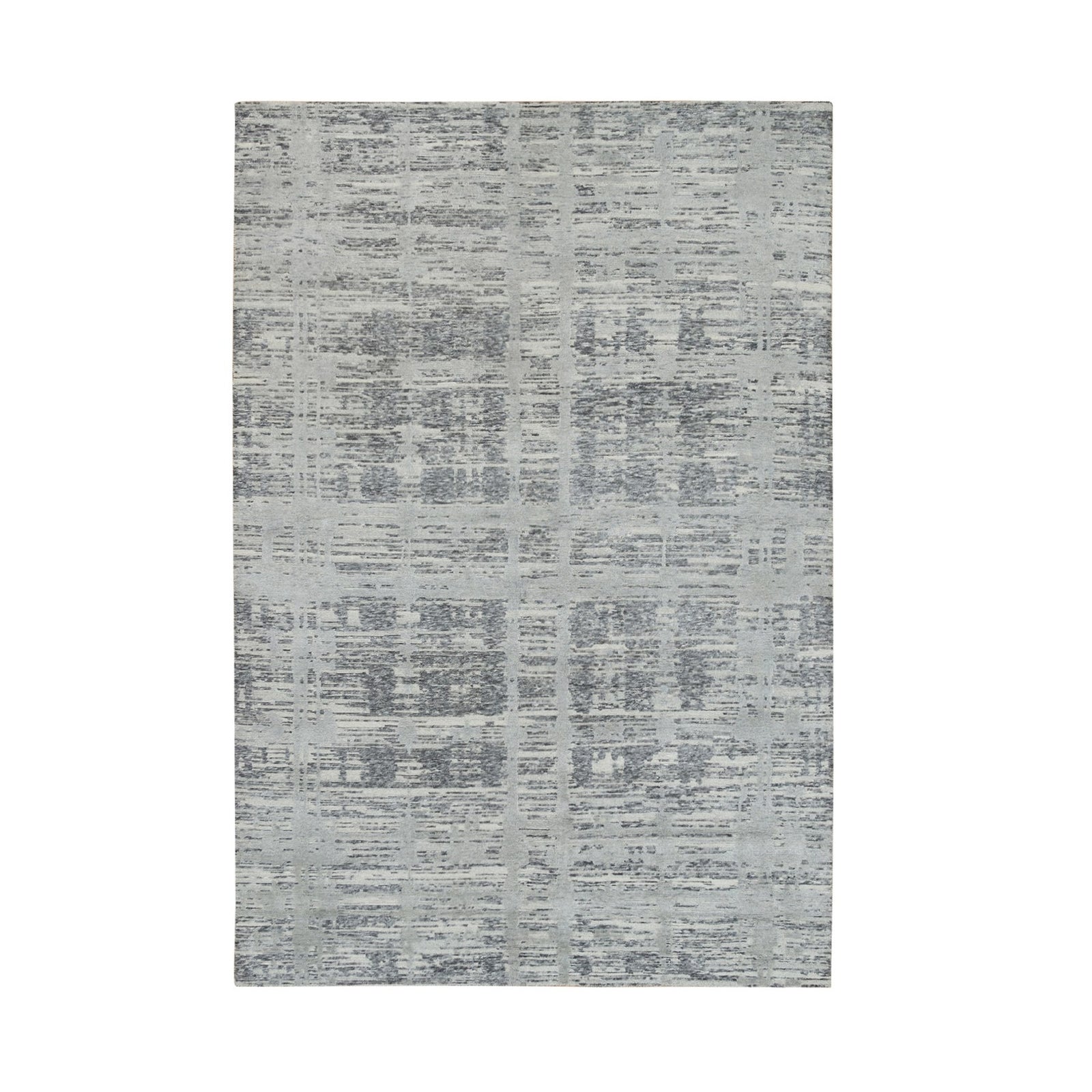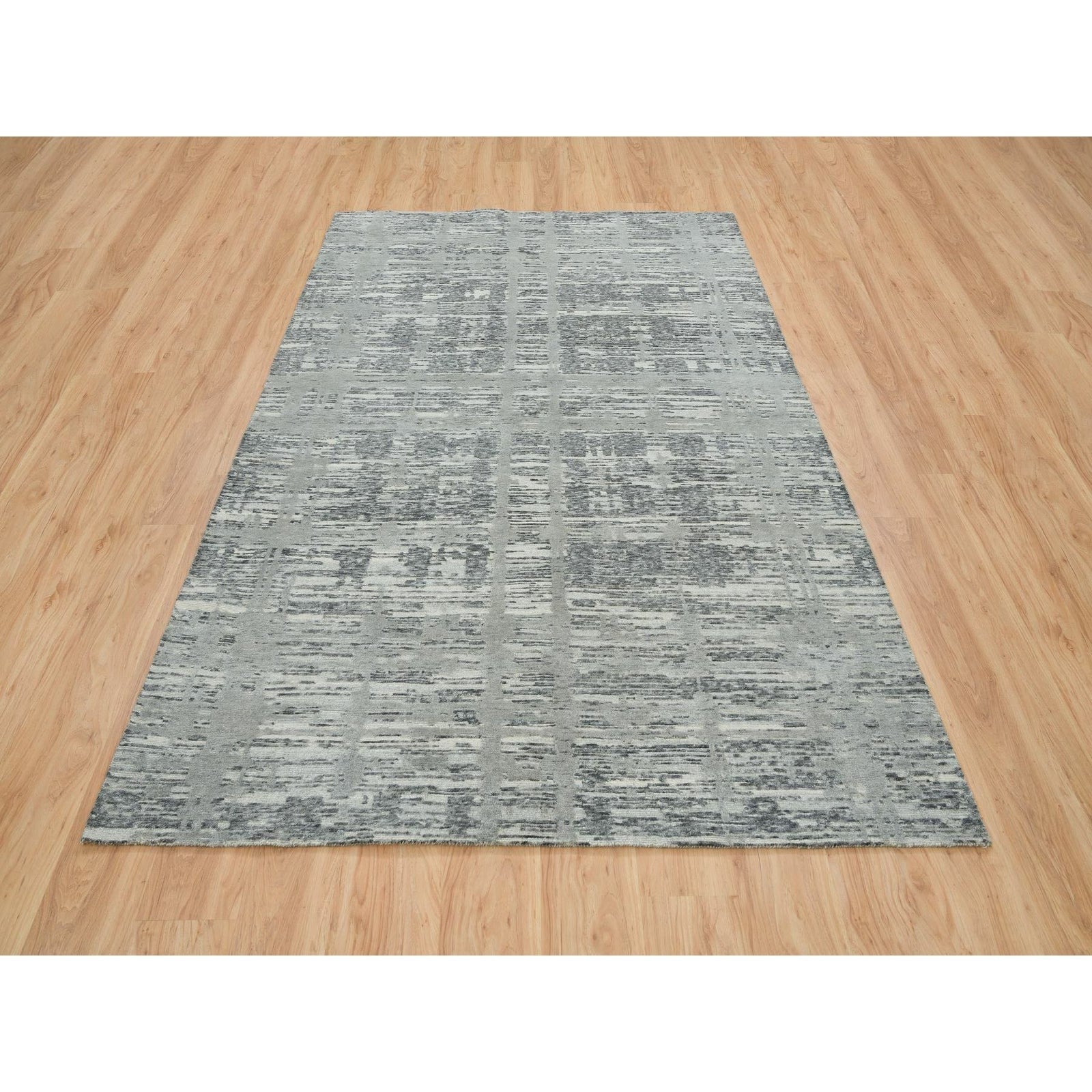 6'1"X9'2" Dark Grey Hand Knotted Undyed Natural Wool Oriental Rug