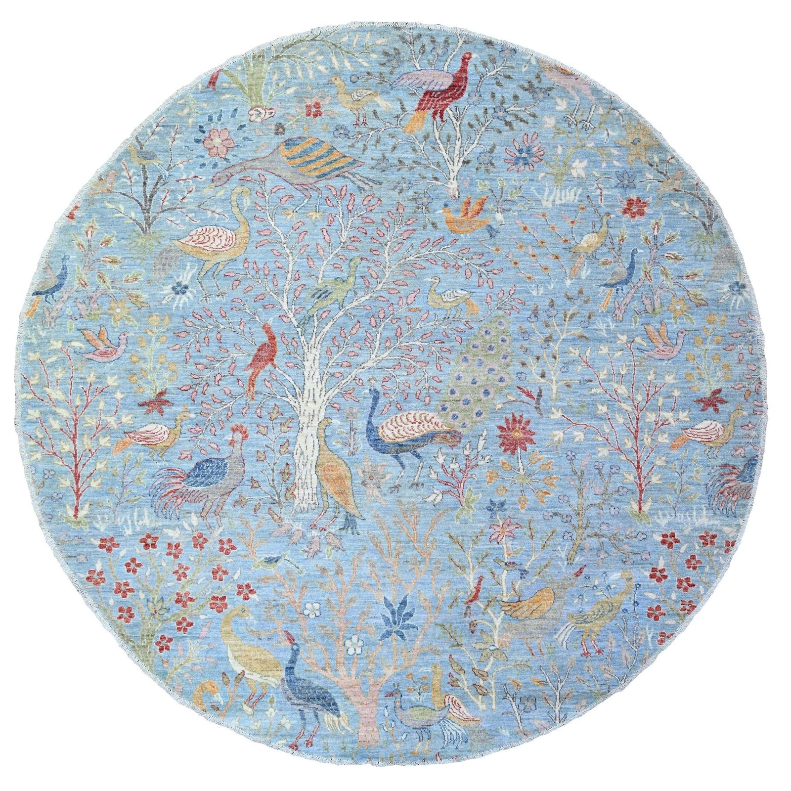 8'3"X8'3" Blue Afghan Peshawar Organic Wool Hand Knotted Round Rug