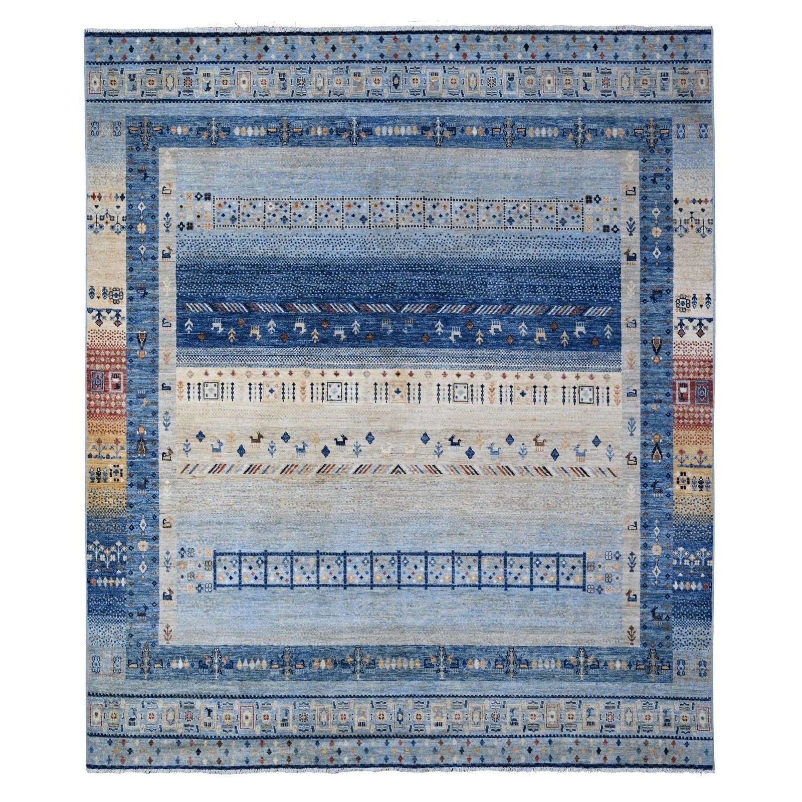 8'3"X9'6" Steel Blue Fine Kashkuli Gabbeh All Natural Wool Oriental Rug