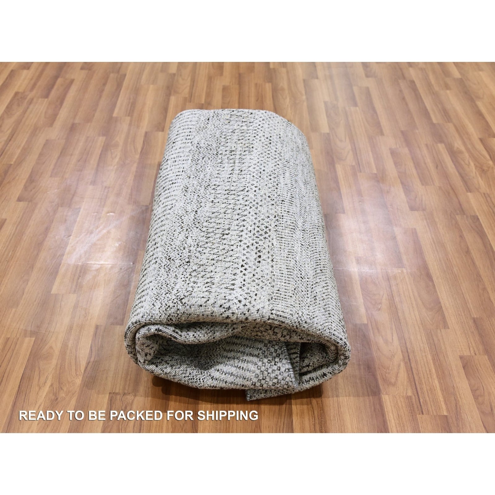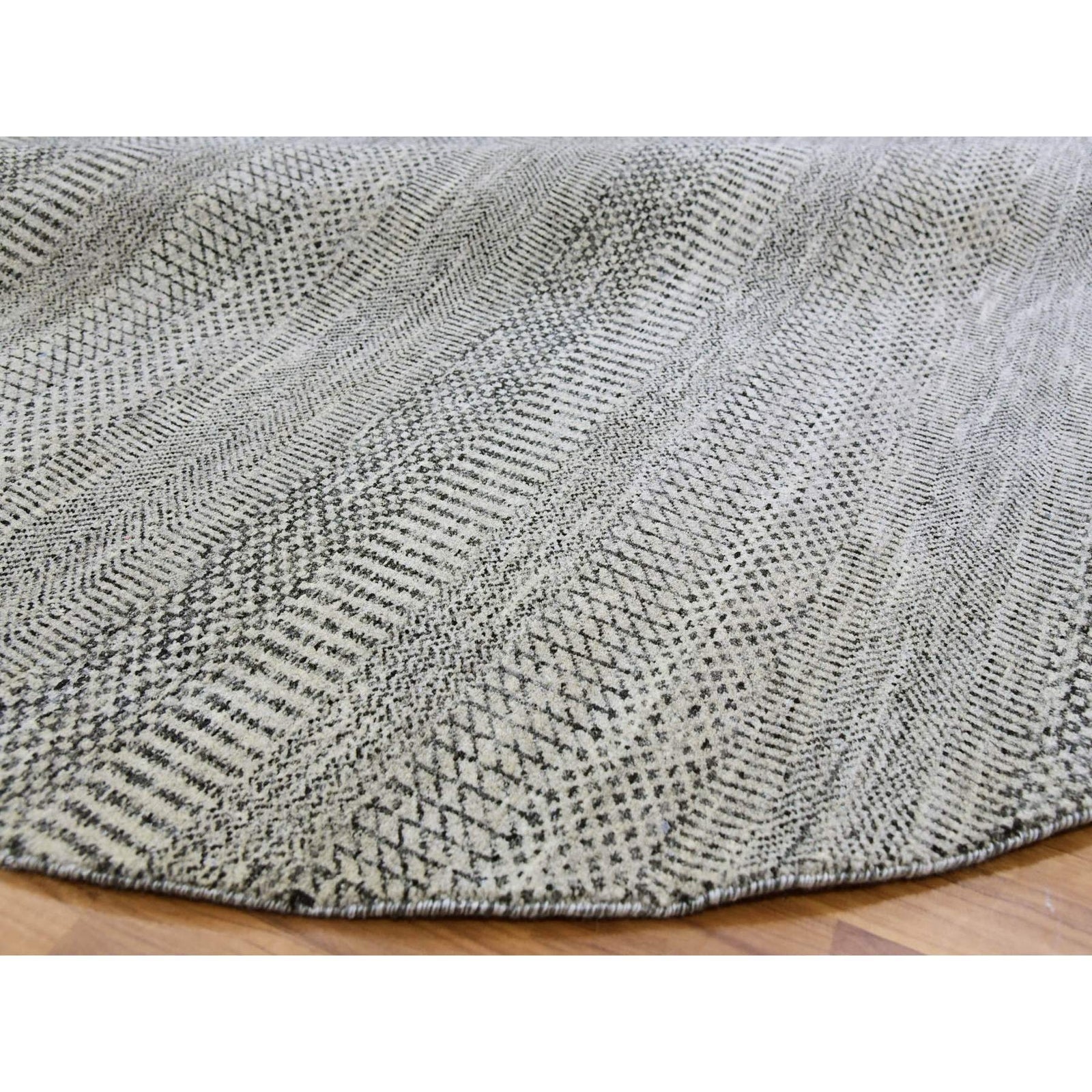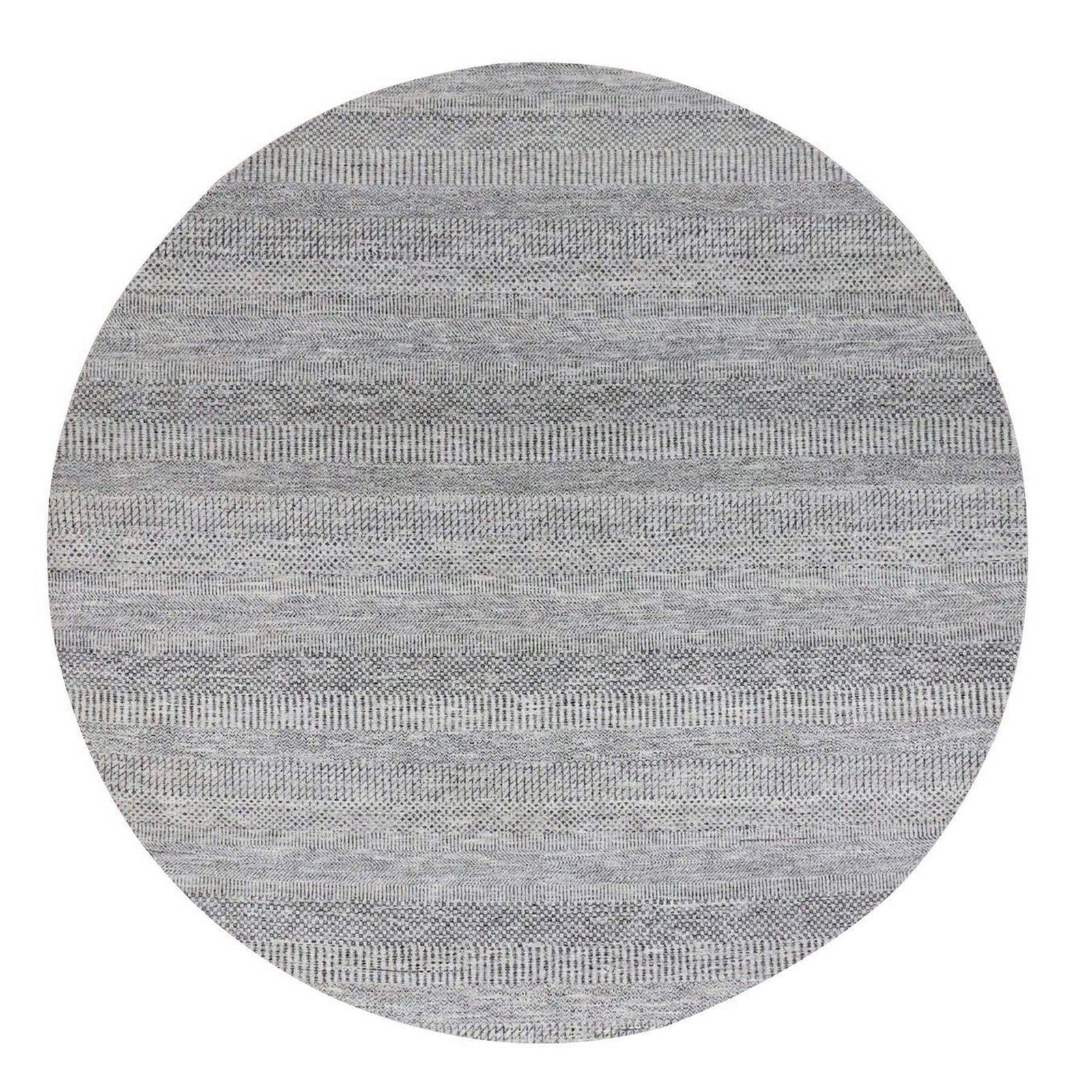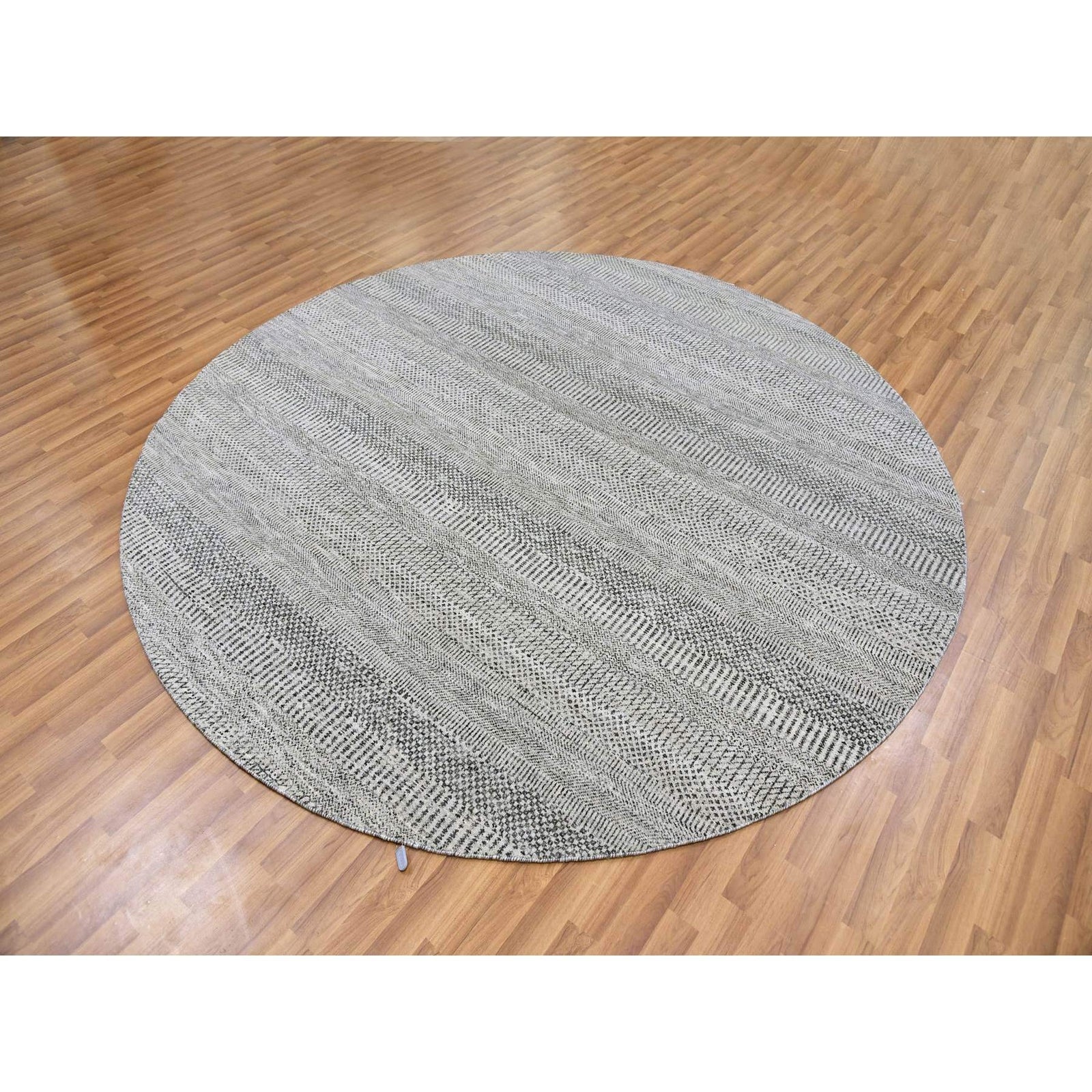 8'X8' Bright Gray Hand Knotted Grass Design Round Pure Undyed Wool Rug