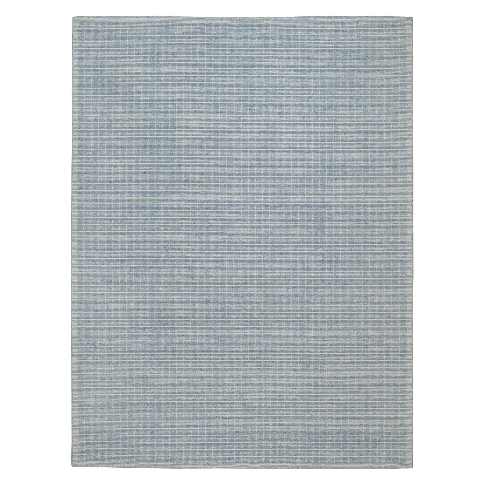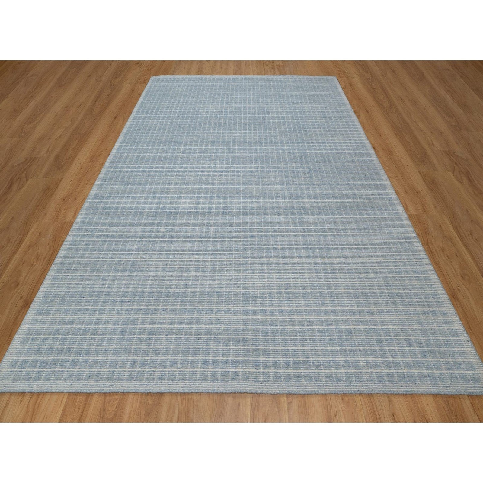 9'1"X12' Stone Blue,Modern Plain Decor Box Design Wool Loomed Knotted Rug