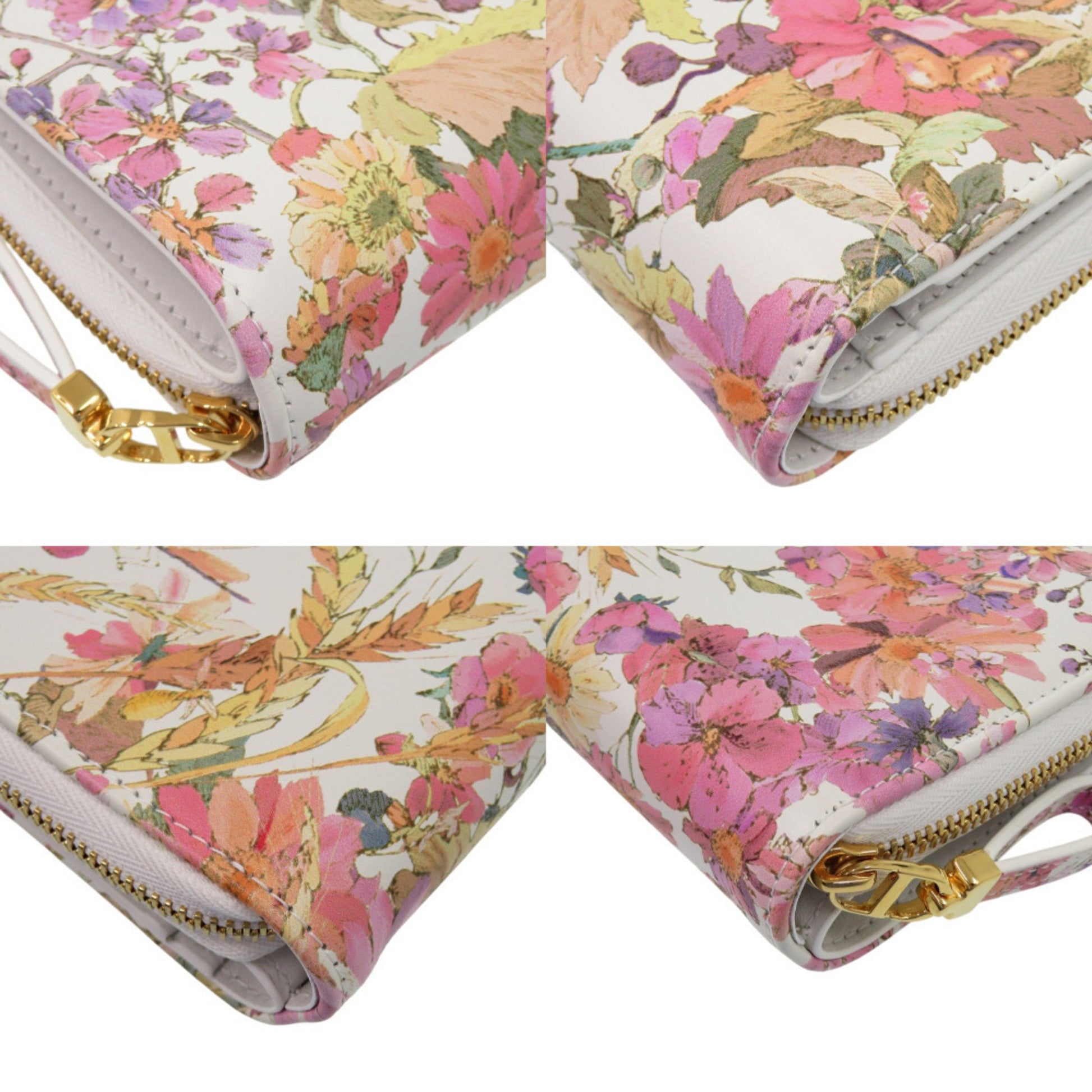 Christian Dior Caro Scarlet Flower 98 Ma 0214 Calfskin White Bifold Wallet 0438