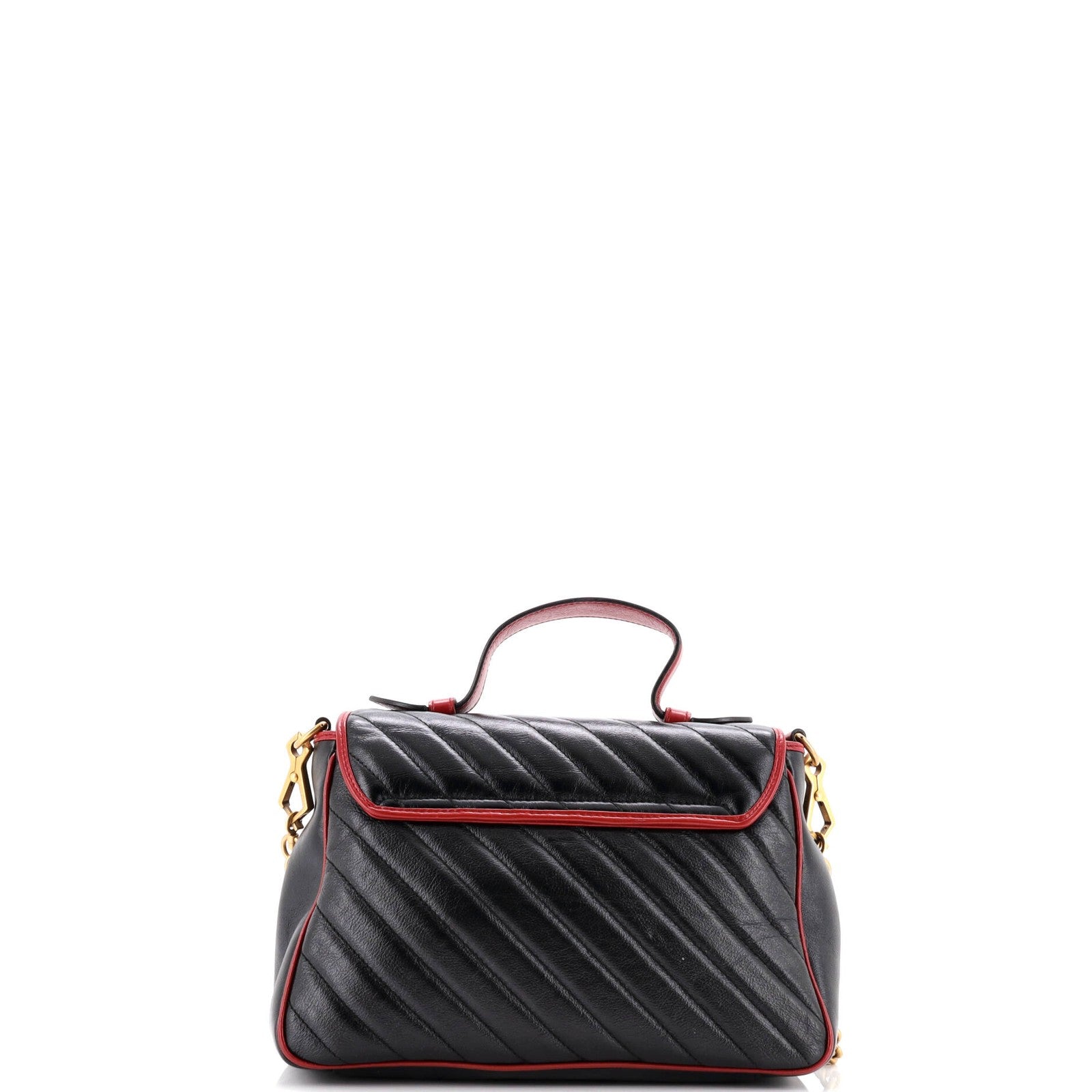 Gucci Gg Marmont Top Handle Flap Bag Diagonal Quilted Leather Small