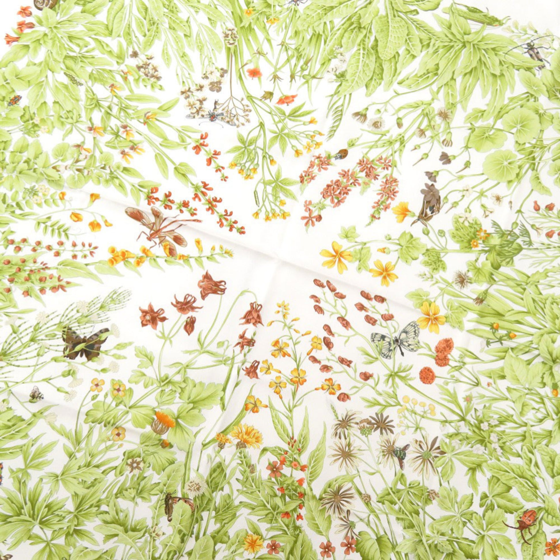 Herms Carr 90 La Prairie Prairie Silk White Scarf Muffler 0136 Hermes