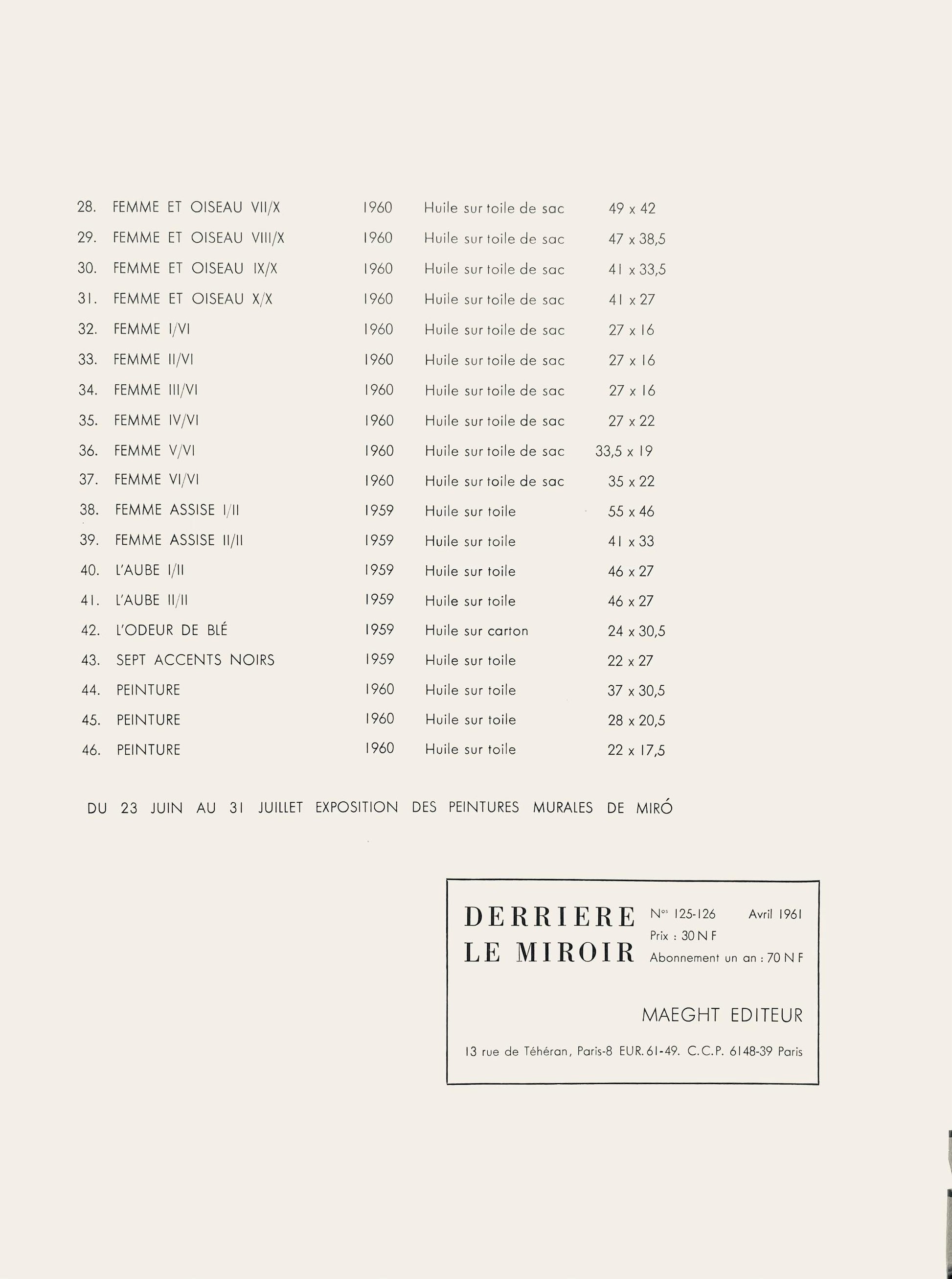 Excerpted from a Christies, New York lot essay, The life span of Derrire le Miroir was thirty-five years.
