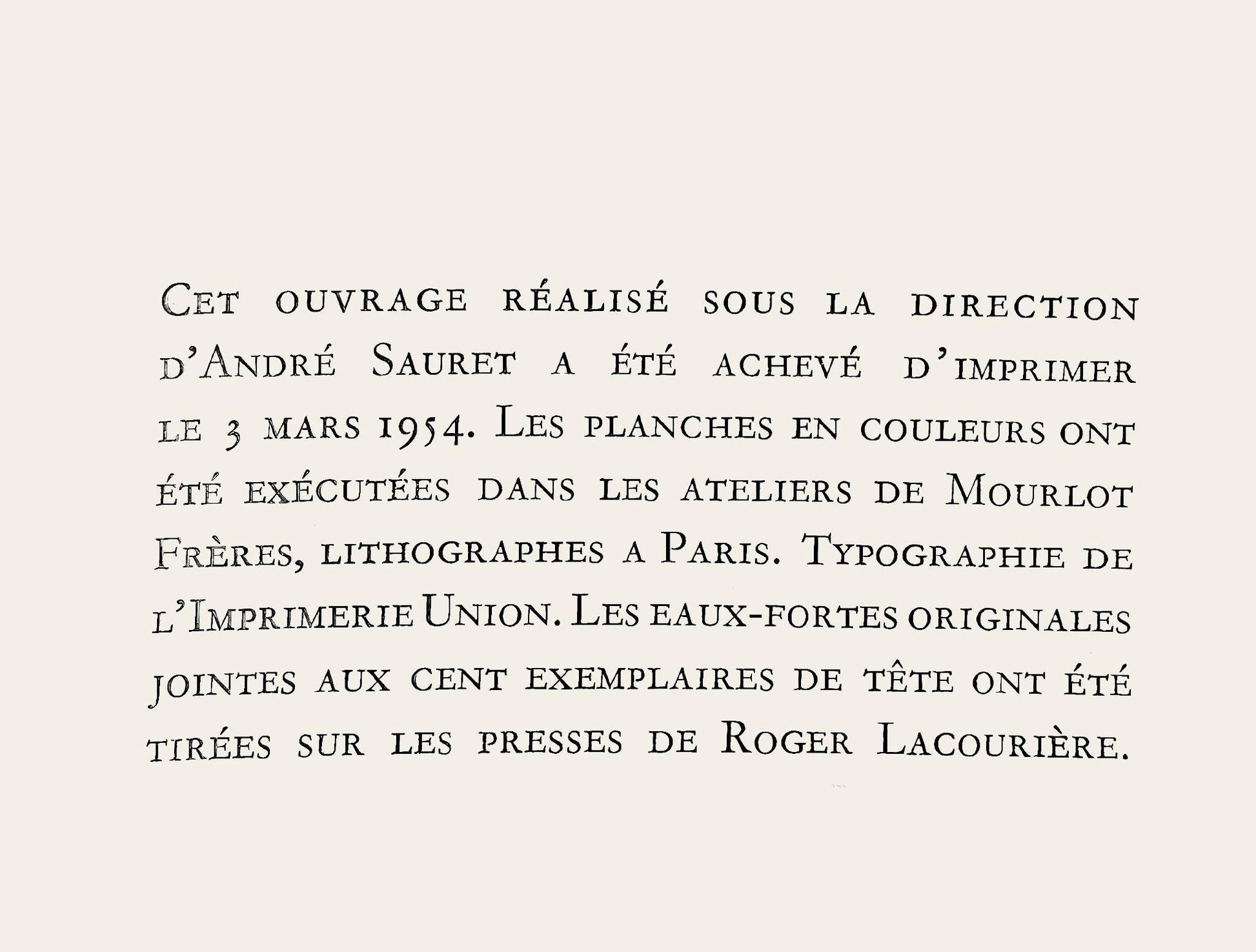 The color plates were executed in the workshops of Mourlot Frres, lithographes, in Paris.