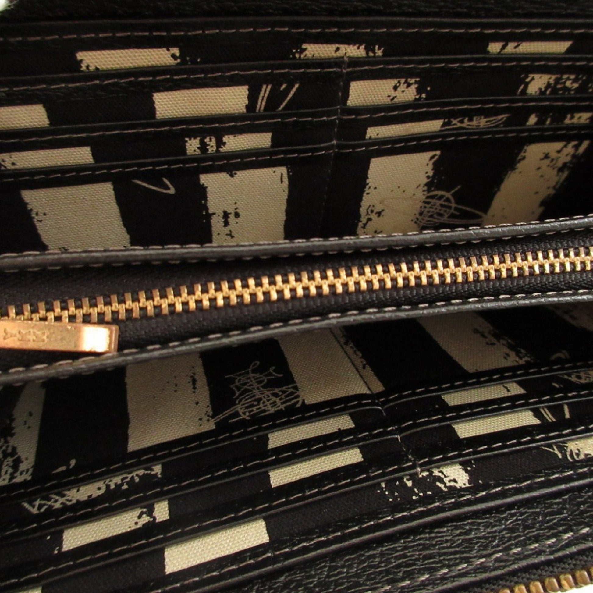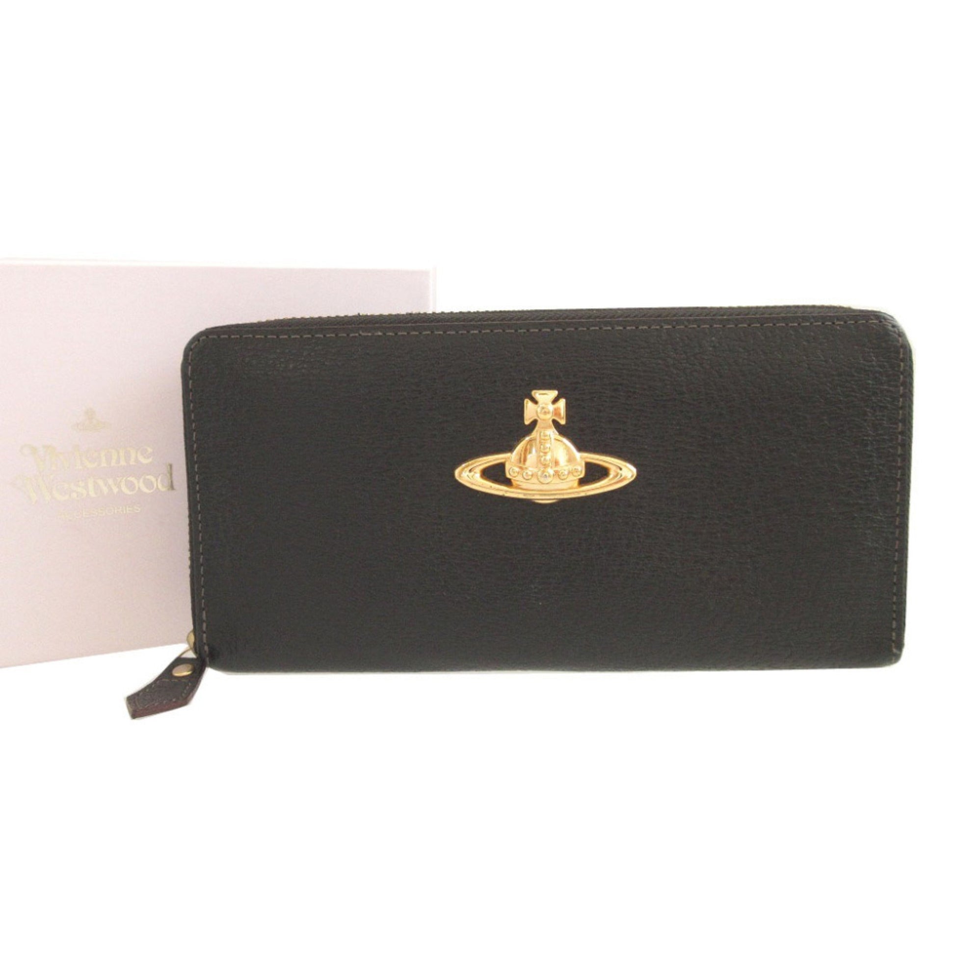 Like New Vivienne Westwood Orb Pattern Leather Black Round Zip Long Wallet 1658