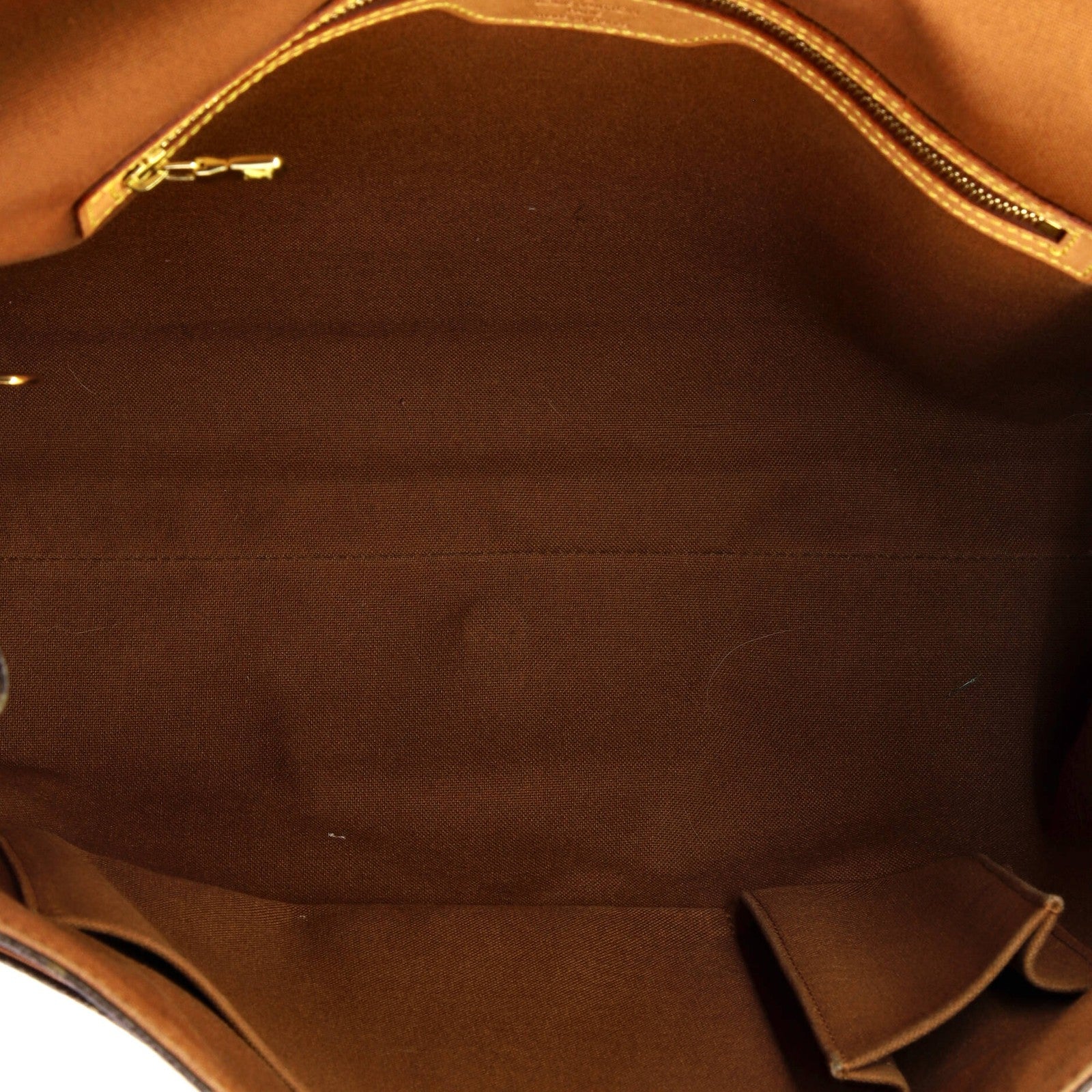 Condition: Fair. Exterior: heavy scuffs throughout, heavy edge wear, heavy corner wear, heavy discoloration throughout, creases, cracking. Handles/Straps: heavy discoloration, scuffs, cracking, minor creases. Interior: scuffs, discoloration, light odor. Hardware: heavy tarnished, scratches