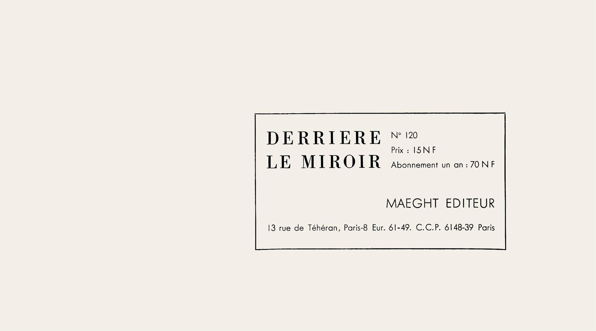 The name, Derrire le Miroir was suggested by Jacques Kober, manager of Galerie Maeght.