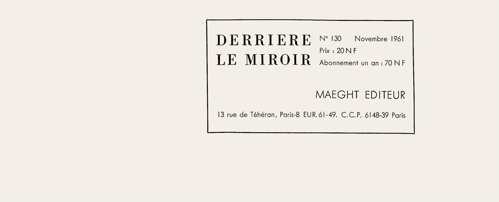 The name, Derrire le Miroir was suggested by Jacques Kober, manager of Galerie Maeght.