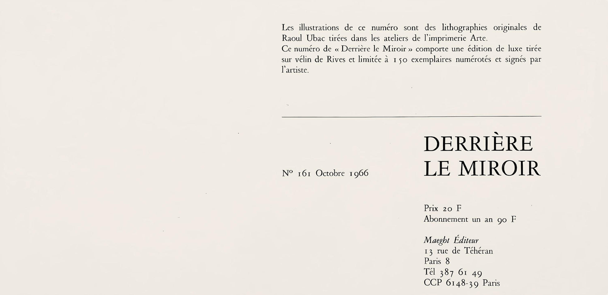 Published by Aim Maeght, diteur, Paris; printed by ditions Pierre Feu, Galerie Maeght, Paris.