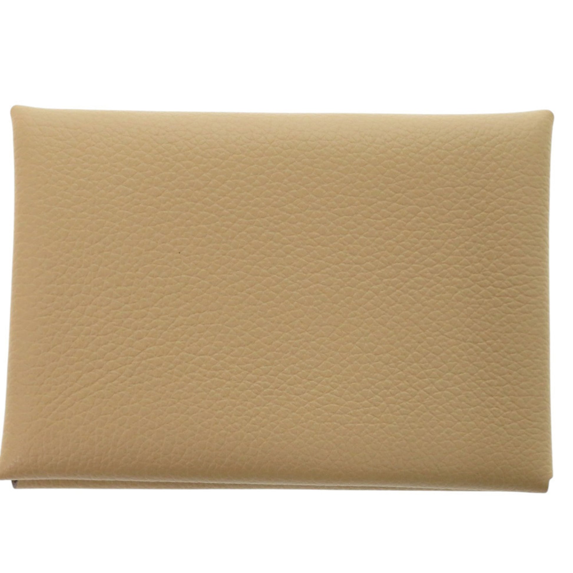 Unused Herms Calvi Duo Evercolor Beige Marfa K Stamp (Made In 2025) Coin Case Wallet 1348 Hermes