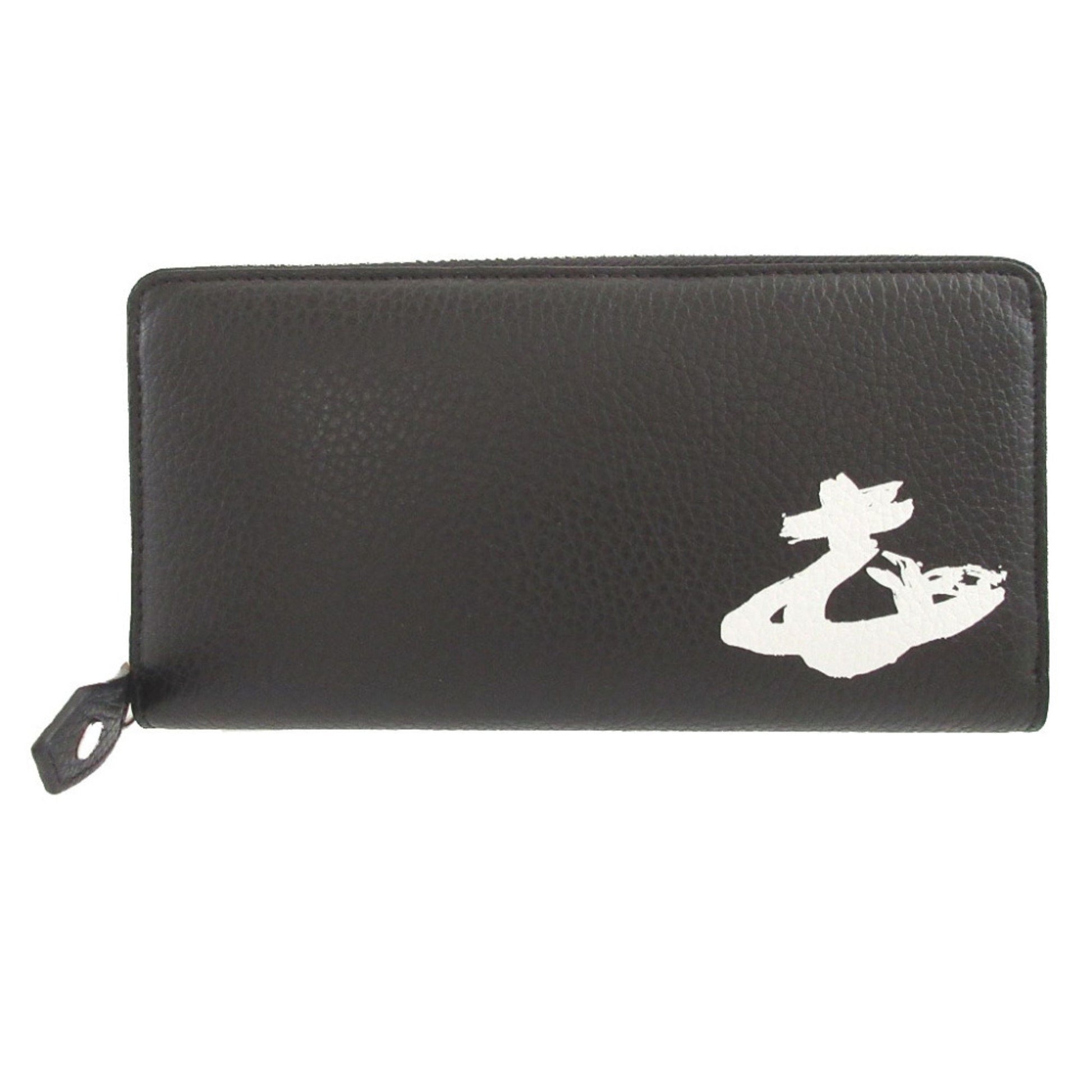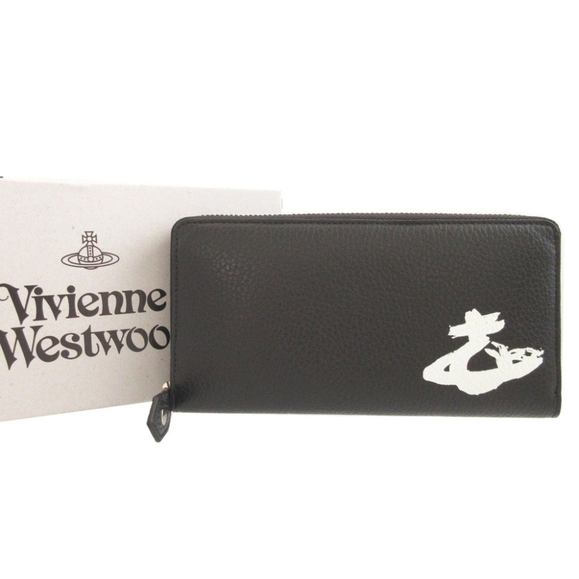 Unused Vivienne Westwood Orb Pattern Leather Black Round Zip Long Wallet 1657