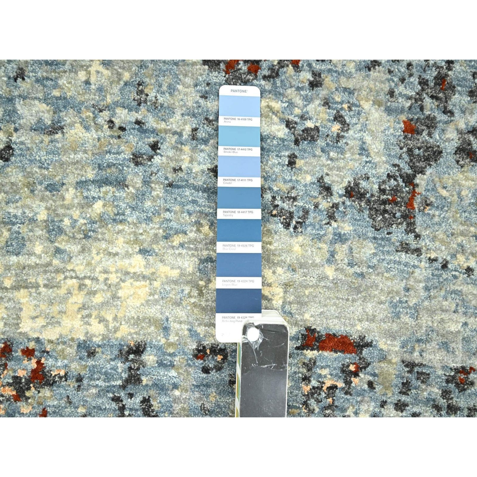 2'6"X12'2" Beige With Blue Abstract Design Wool Hand Knotted Runner Rug